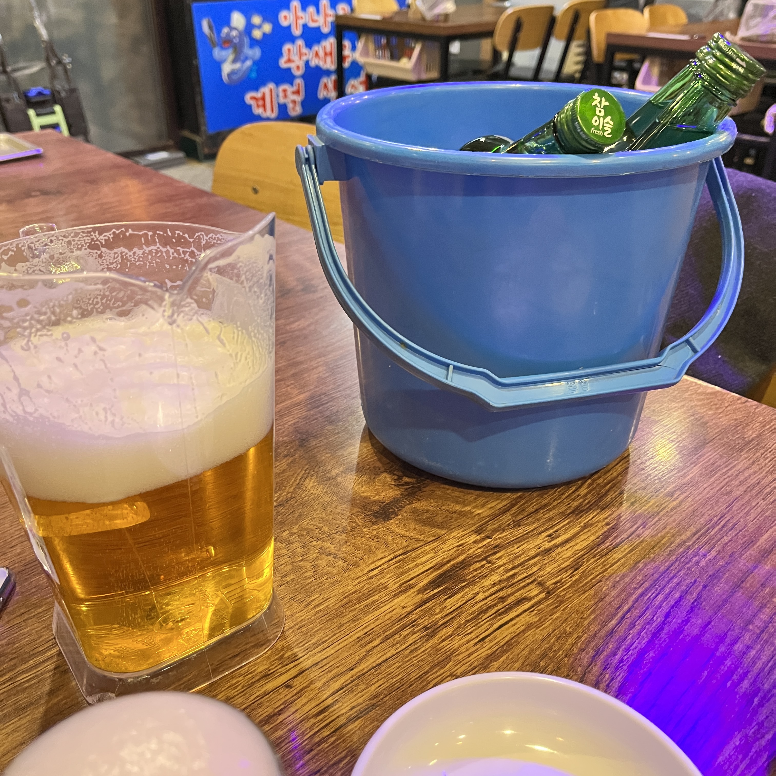잔이 꽝꽝 얼어서 나옵니다. 술은 최대한 차갑게 먹어야 맛있다는 주의인데, 사장님이 그 사실을 아주 잘 아는 듯한 맥주잔.