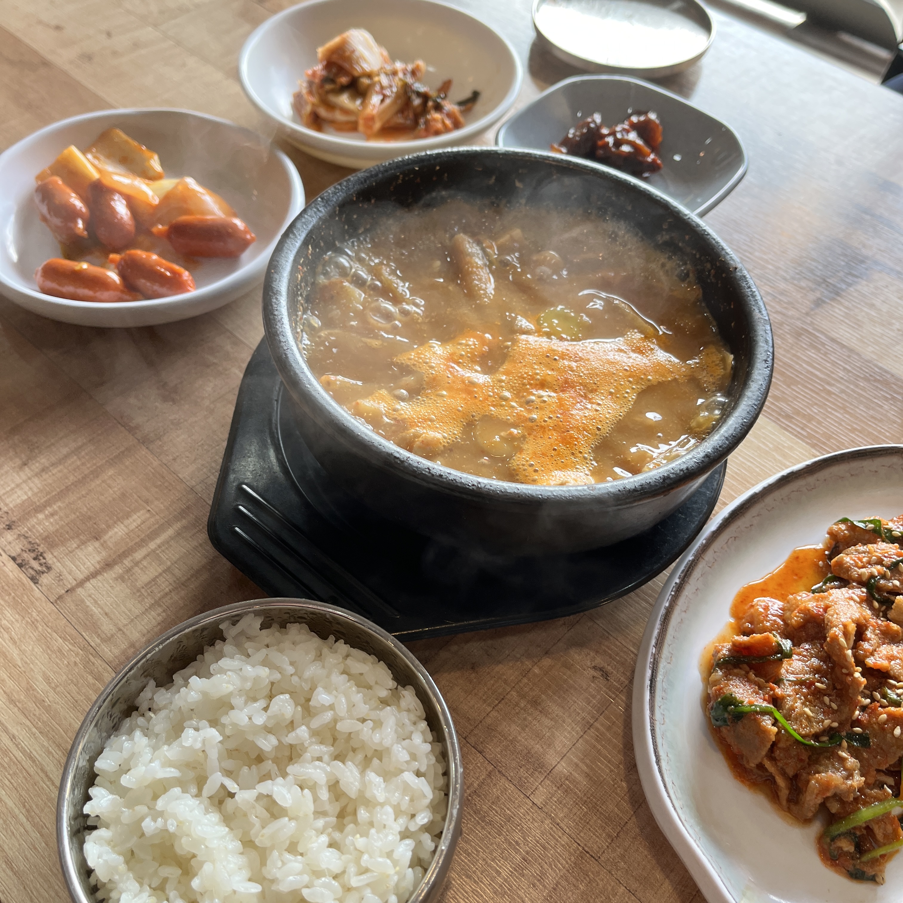 이 날은 된장찌개, 제육볶음, 그리고 다양한 반찬이 나왔습니다.