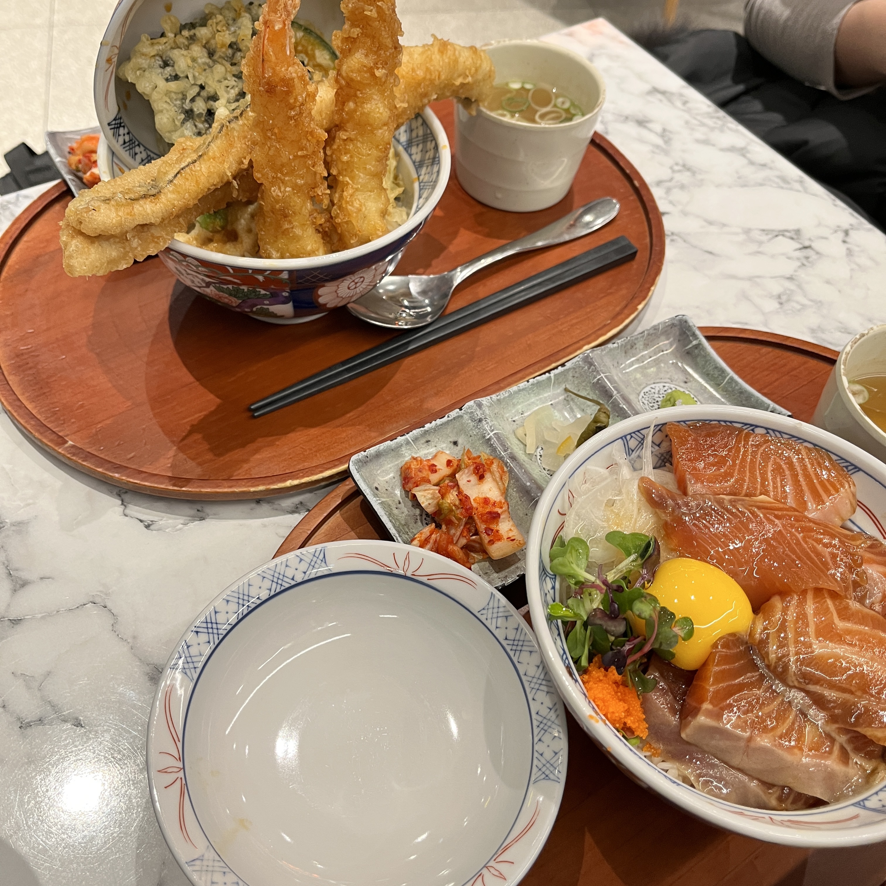 저는 둘이서 아나고텐동과 소유사케동 시켰습니다.