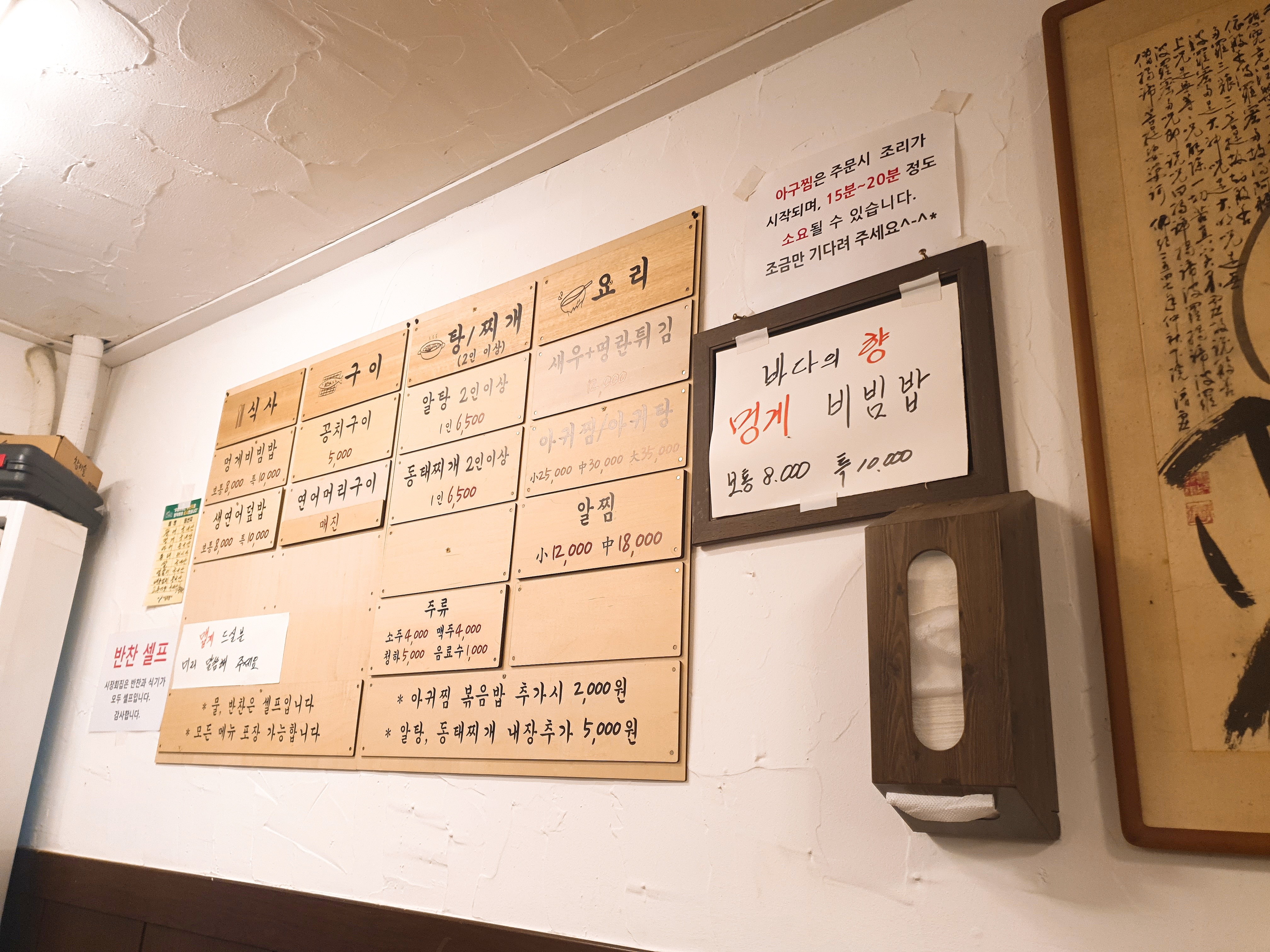 저희는 탕보다는 찜을 한번 먹어보자 해서 아귀찜을 시켰고, 이렇게 오래 기다렸는데 한가지만 먹을 수 있냐며 새우+명란튀김까지 시켰습니다.
