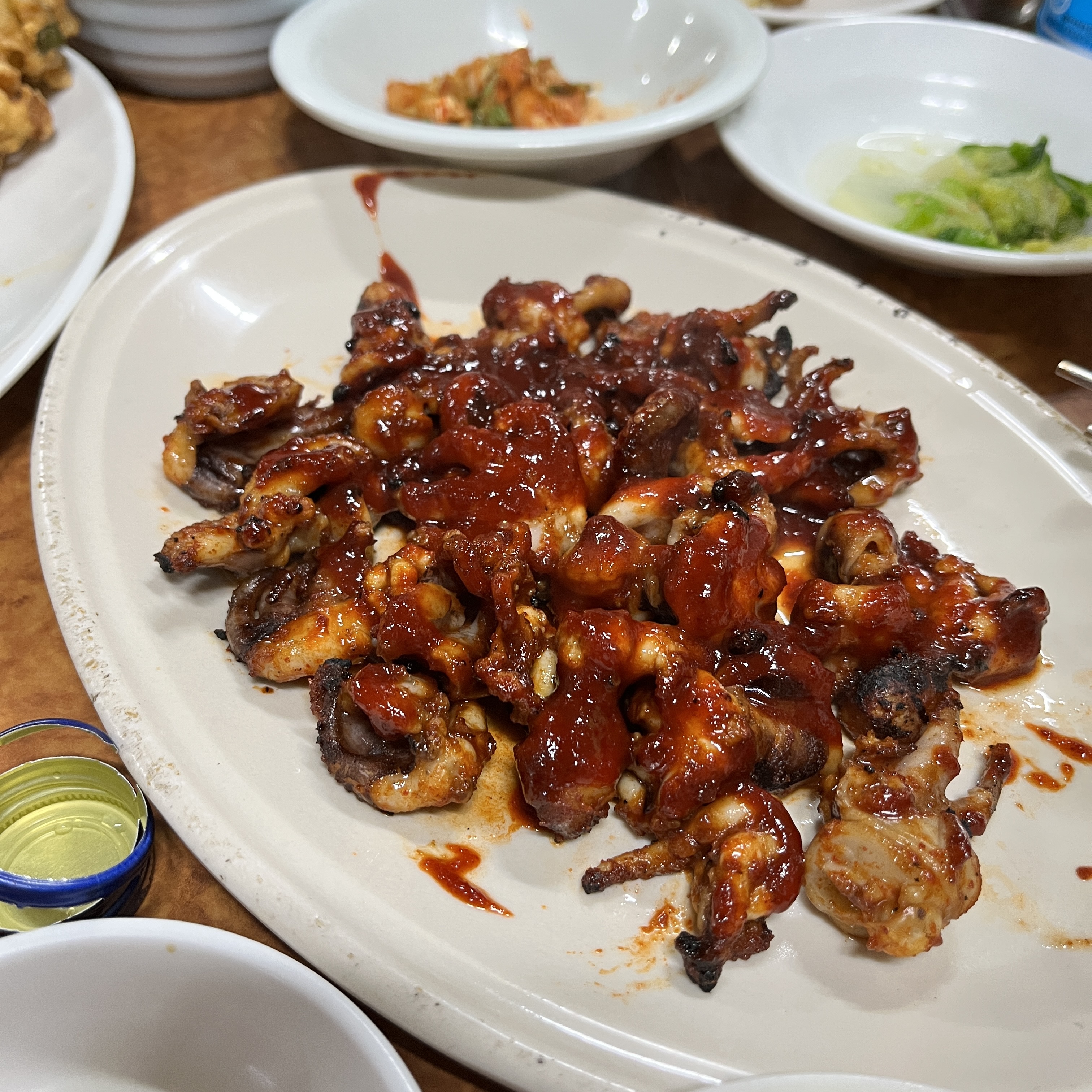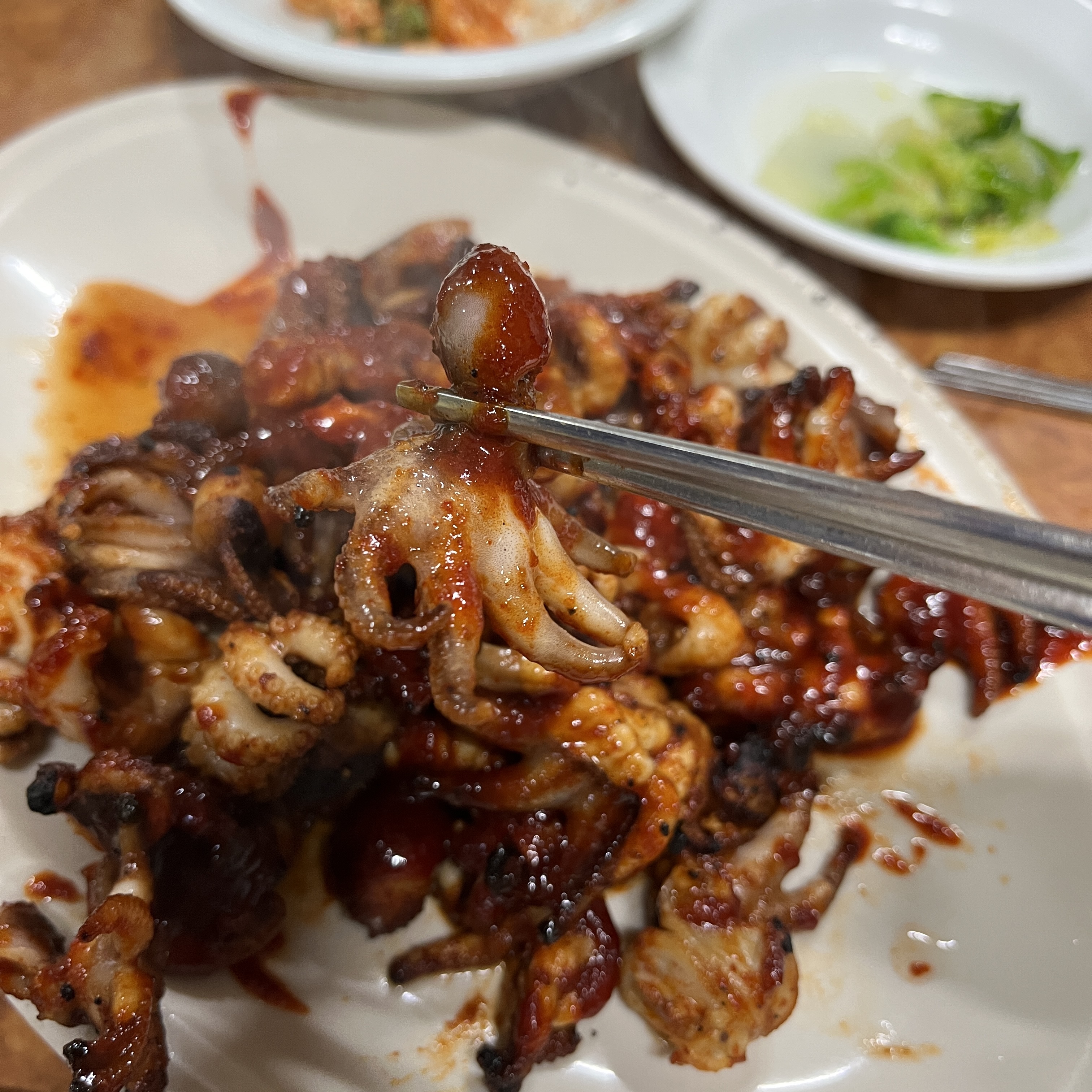 쫀득한 식감에서 씹을수록 나는 고소한 맛에, 불맛에 거기에 매콤한 양념까지.