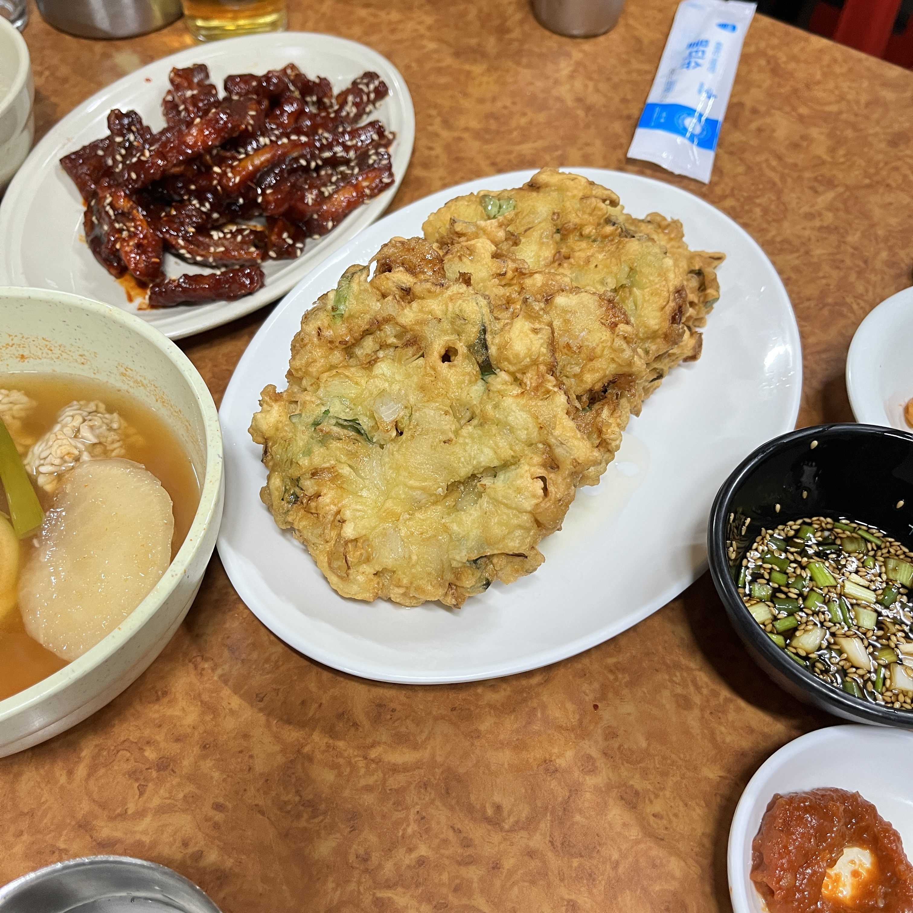 부침가루 반죽이 아아주 고소했고, 양파가 많이 들어있어서 익은 양파의 달달함이 기분좋게 났습니다.