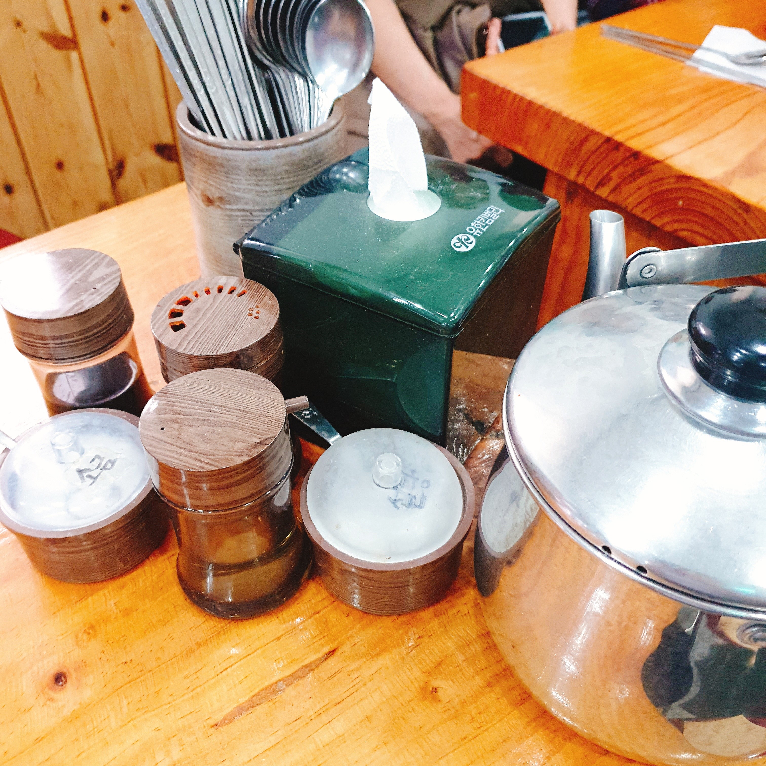 소금 식초 등 각종 양념?이 기본적으로 세팅되어있고, 물을 저렇게 주전자에 따라주십니다.