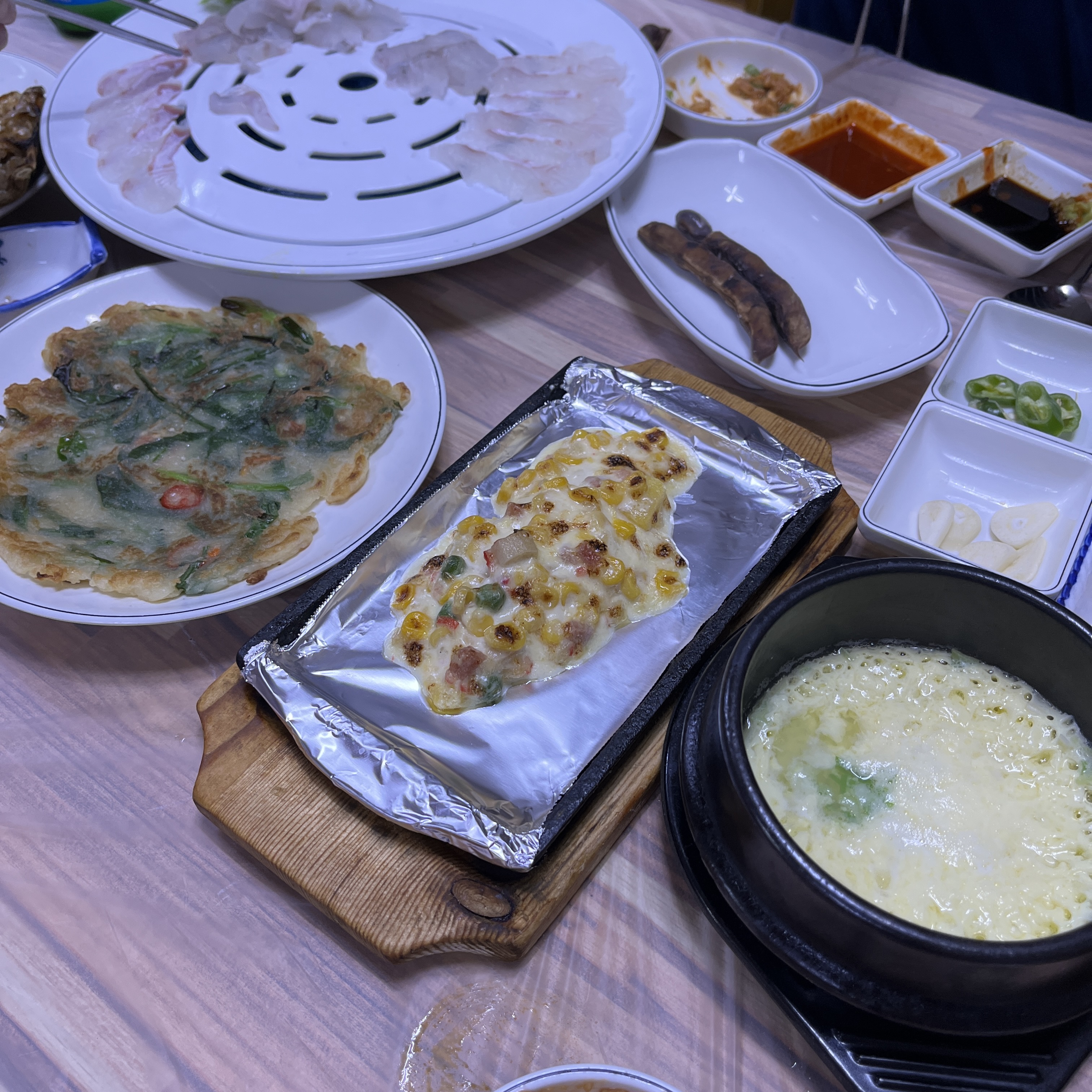 전, 콘, 그리고 계란찜까지.