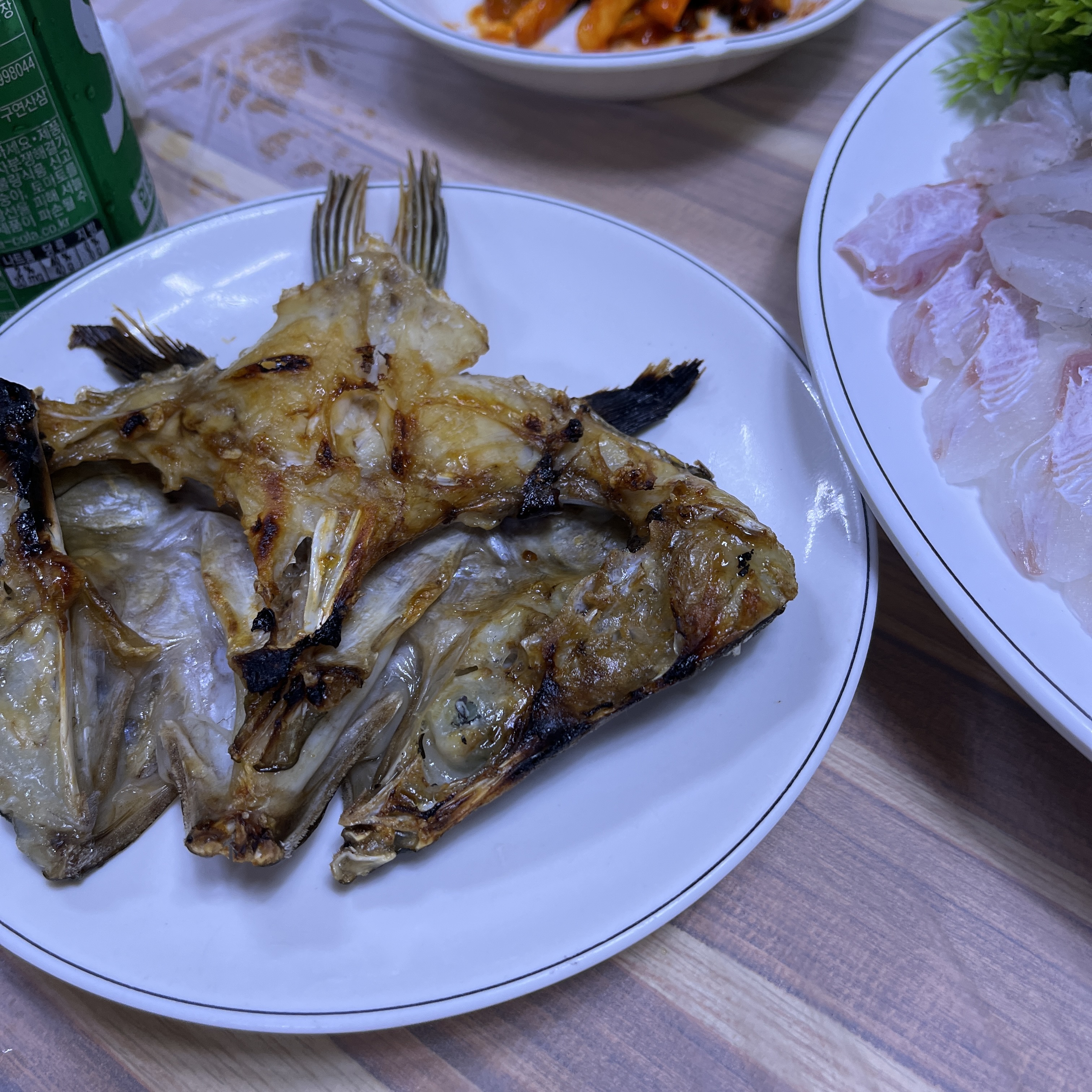 대가리구이. 회 다 먹을 쯤 고소하게 먹기 좋고, 뼈 부분 씹을수록 나는 그 고소함도 아주 괜찮았습니다.