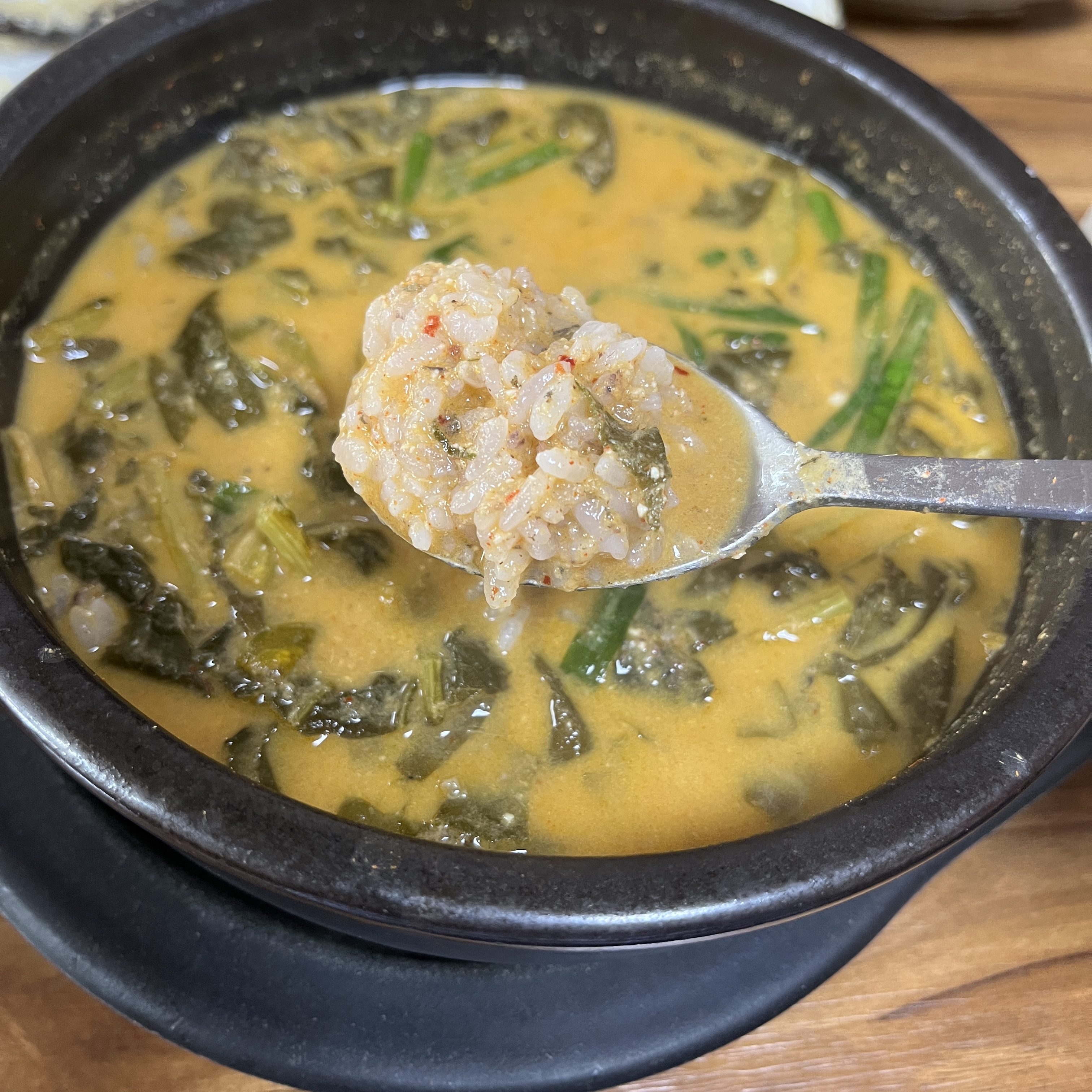 특히 이 깊은 국물과 쫜득한 솥밥의 조화는..