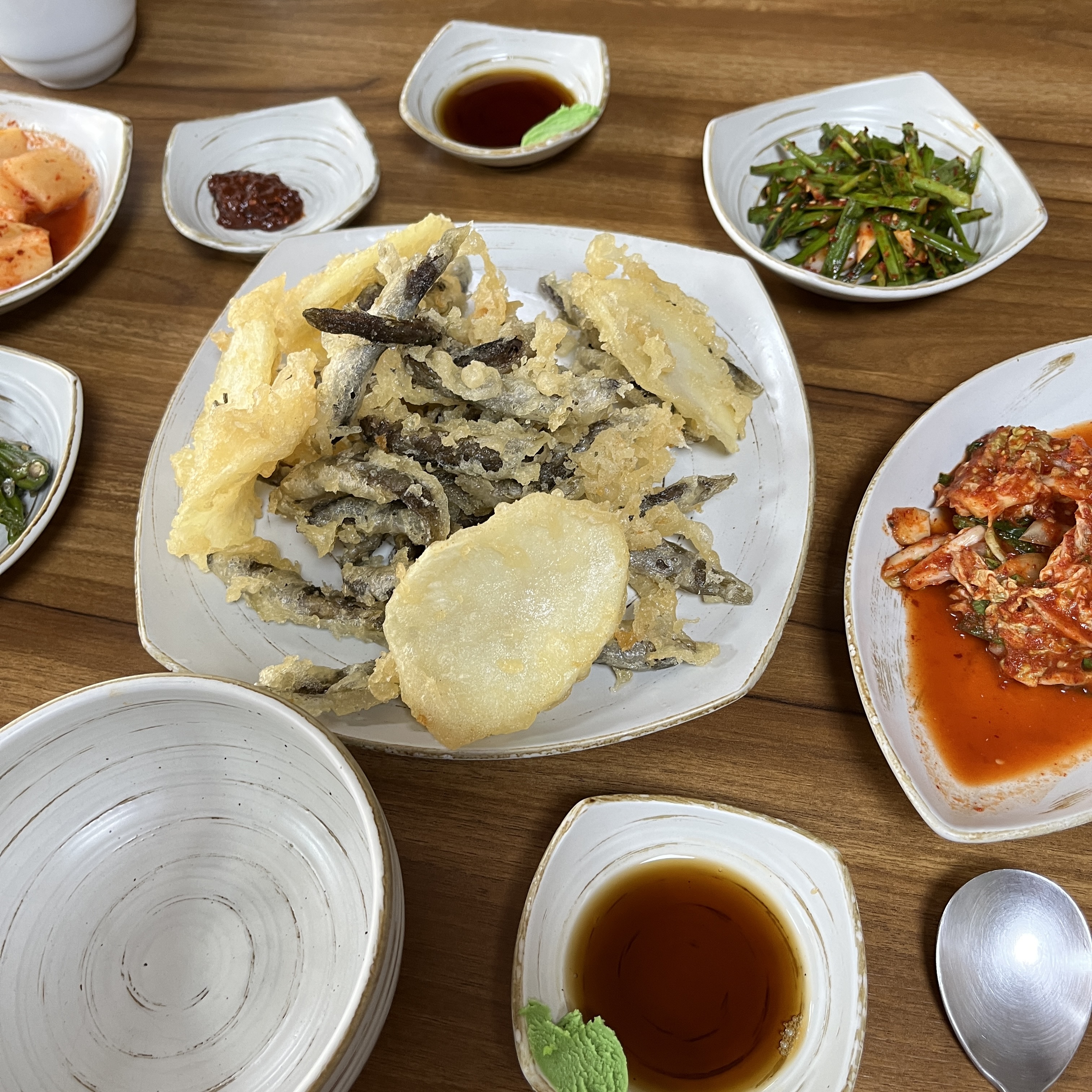추어튀김과 기본 반찬들입니다.