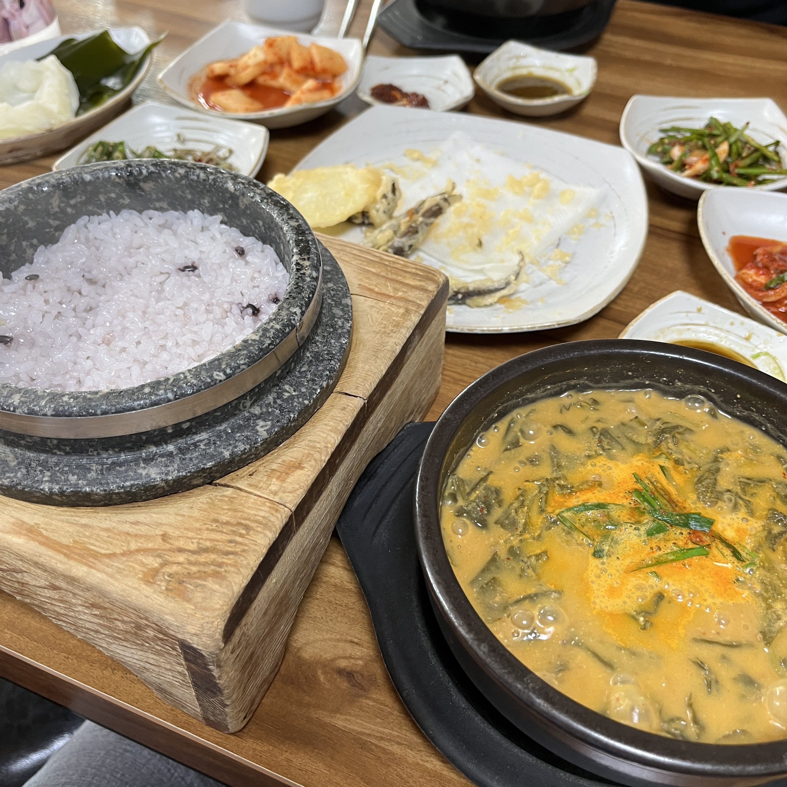 밥 찰기가 장난 아니었습니다. 레알 돌솥밥이어서 아주 쫜득쫜득한 식감이 예술인 밥이 나왔습니다.