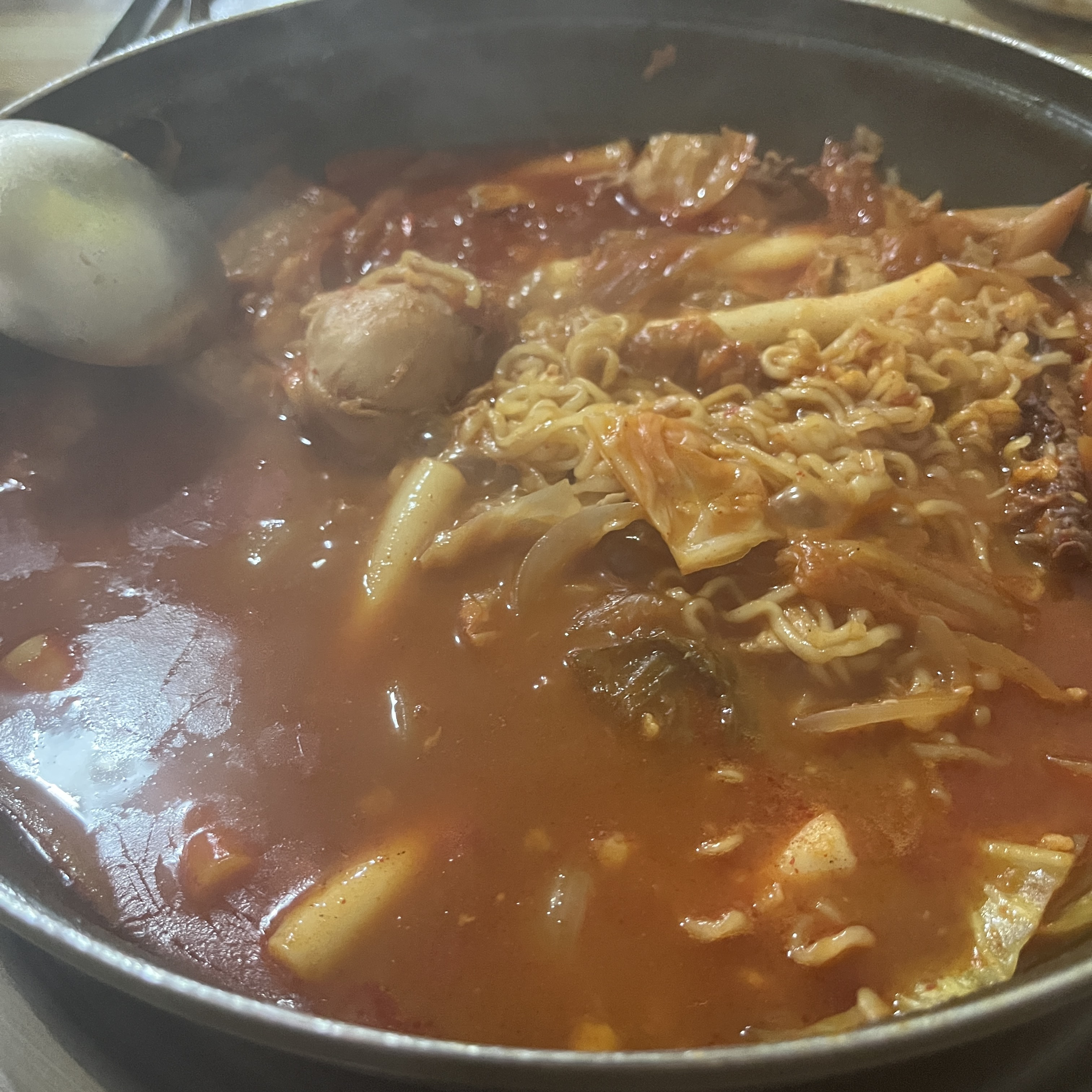 양파, 양배추, 묵은지 등 야채류가 다양하게 들어있고, 닭고기와 떡이 들어있었습니다.