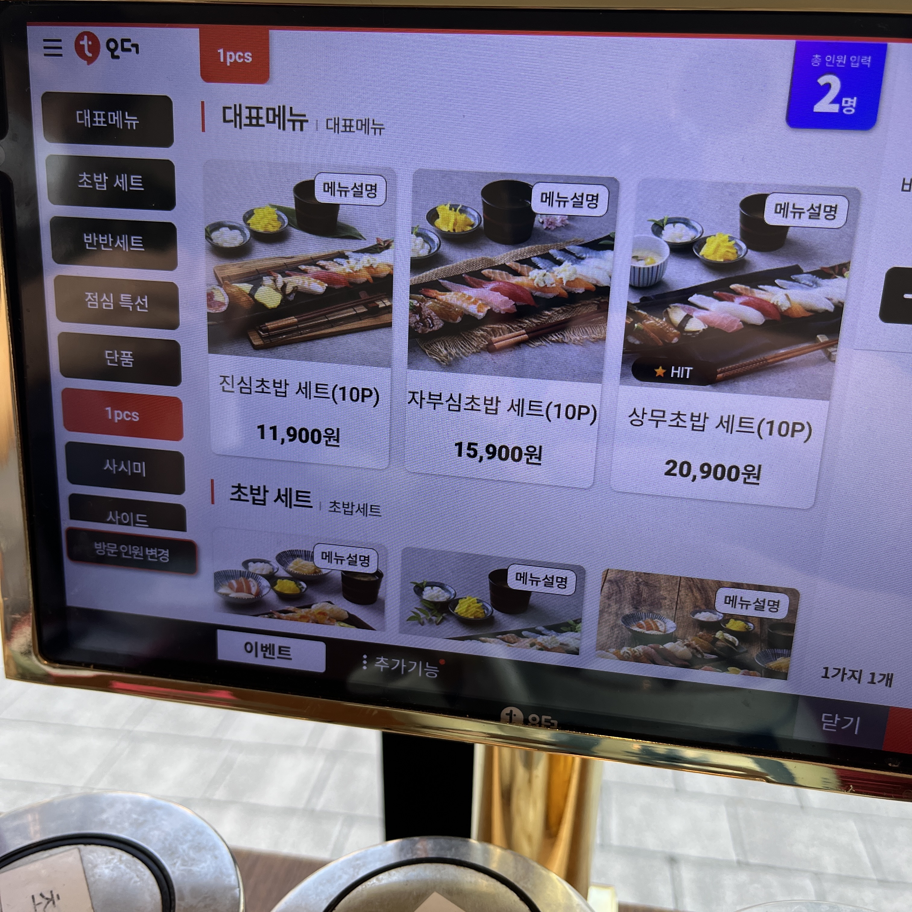 가게에선 이렇게 테블릿에 주문을 하시면 됩니다.