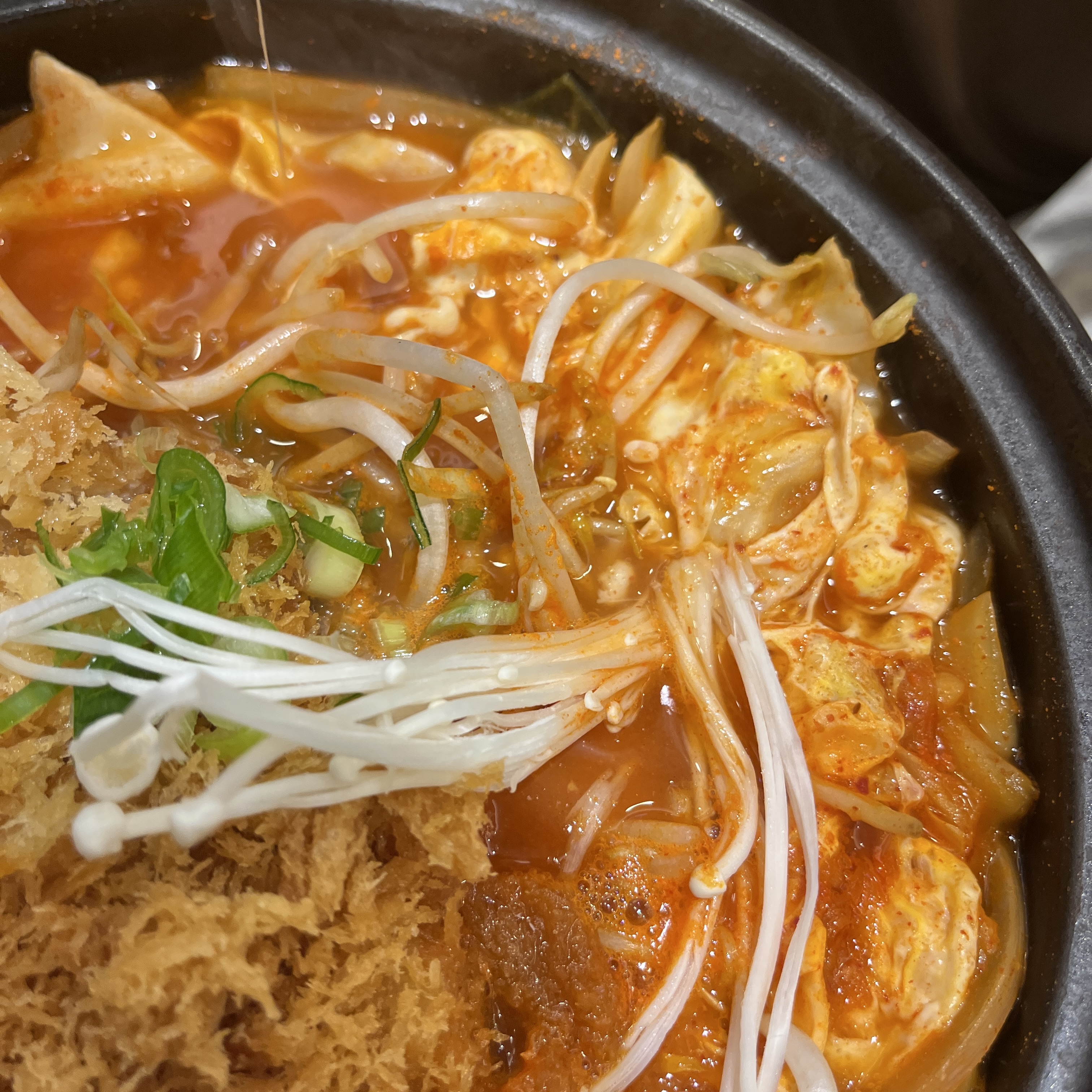 김치나베 국물에 푹 적셔진 요 돈까스 아주 매력있었습니다.