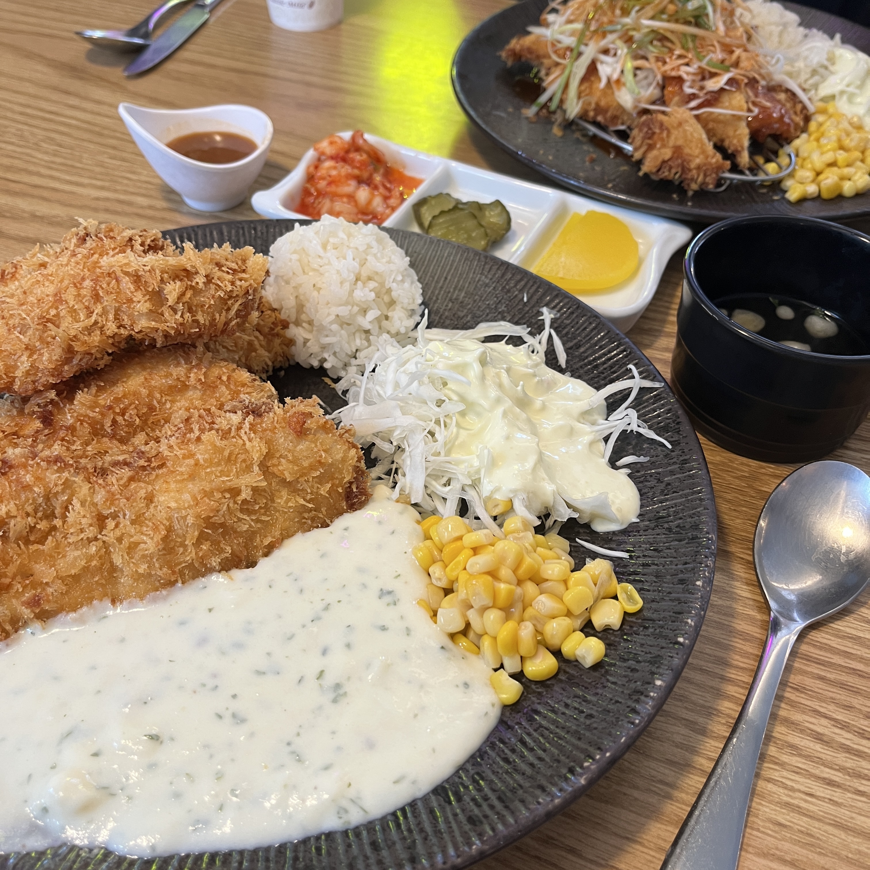 다른 돈까스도 맛있지만, 이날은 치킨까스 먹었는데 아니 닭가슴살 부위가 어찌그리 부드럽던지.. 비법이 너무나 궁금해지는 치킨까스였습니다.