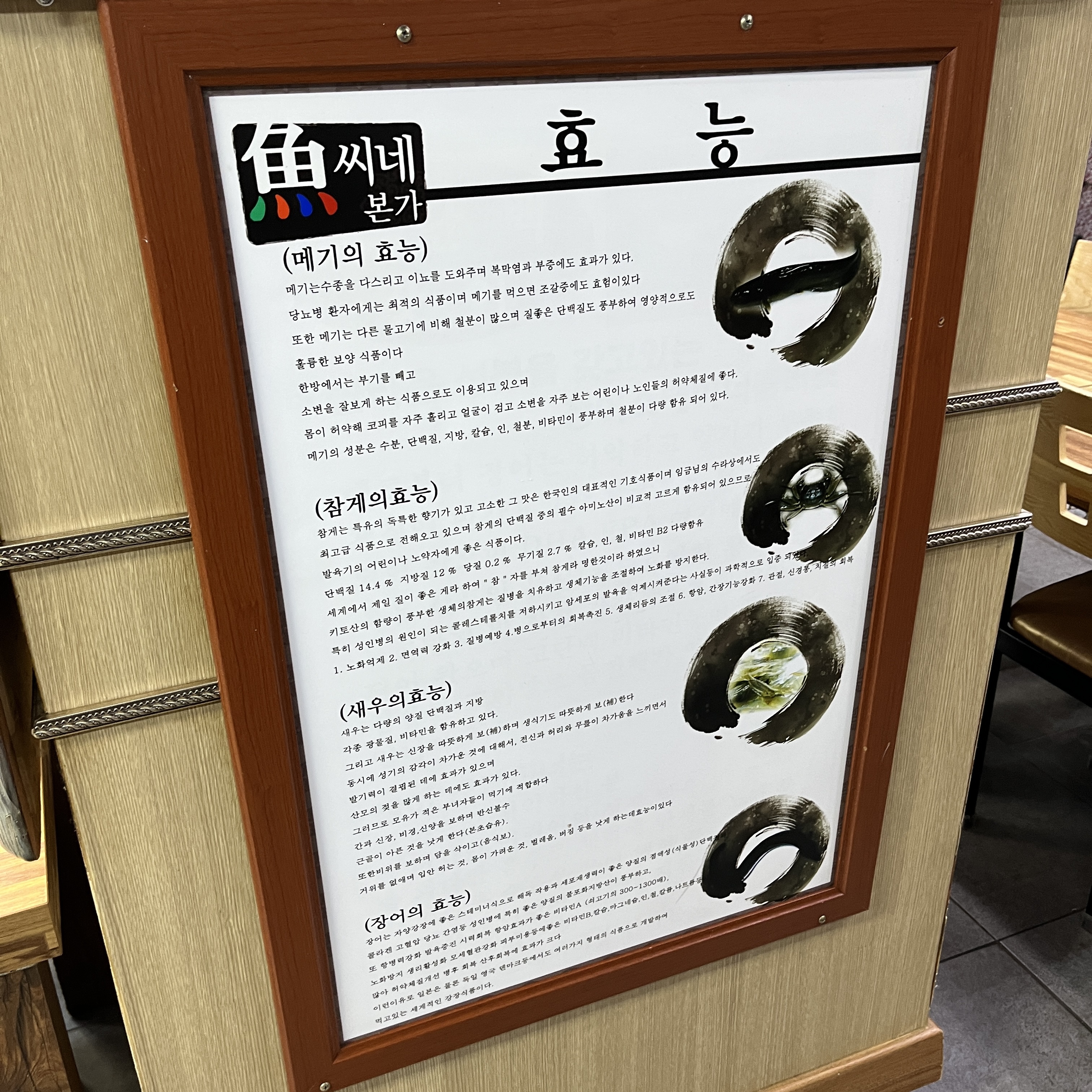 메기, 참게, 새우 그리고 장어의 효능이 써있었는데, 메뉴들이 하나같이 원기회복될 듯한 메뉴들이었어용.