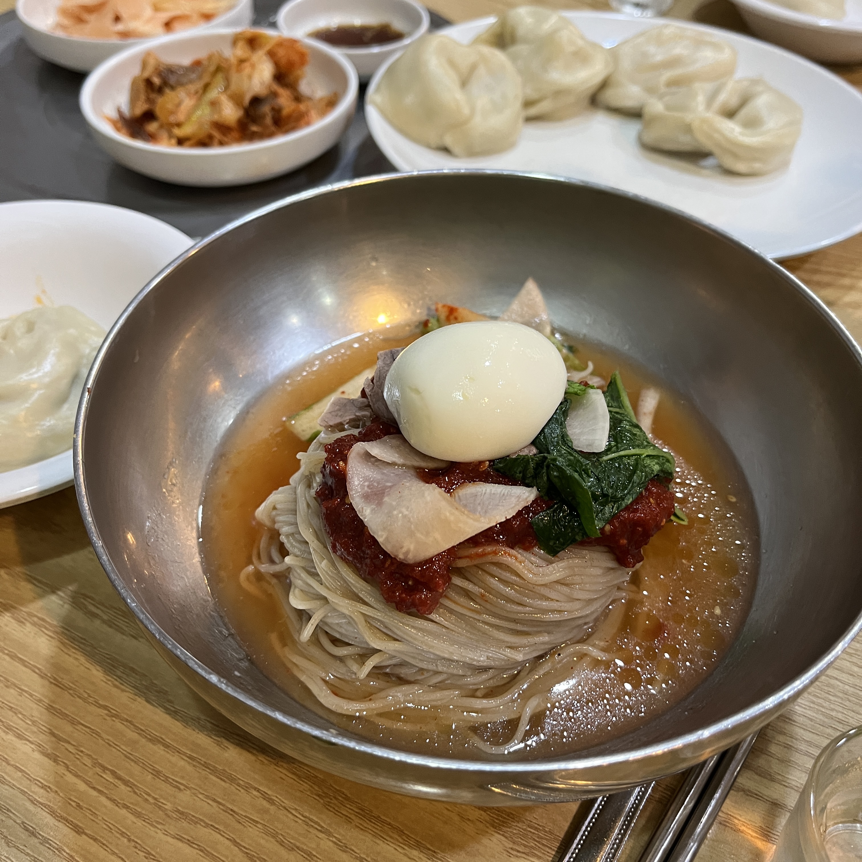 비빔냉면을 시켜봤는데, 특유의 구수한 맛을 즐기기엔 물냉면이 더 좋아보였어요.