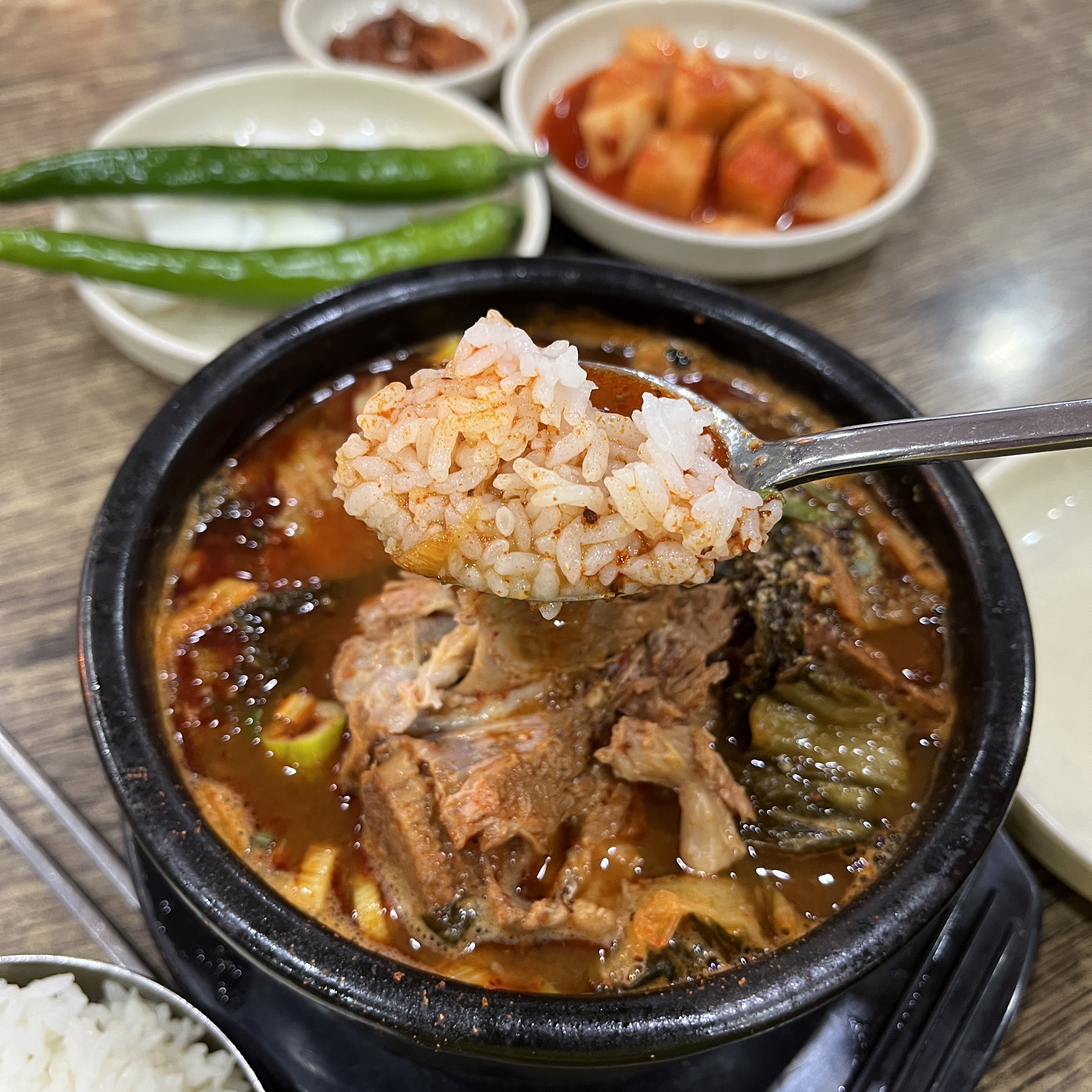 국물은 얼컨하니 좋았고, 저 기름진 맛이 쌀밥이랑 진짜 잘 어울립니다.