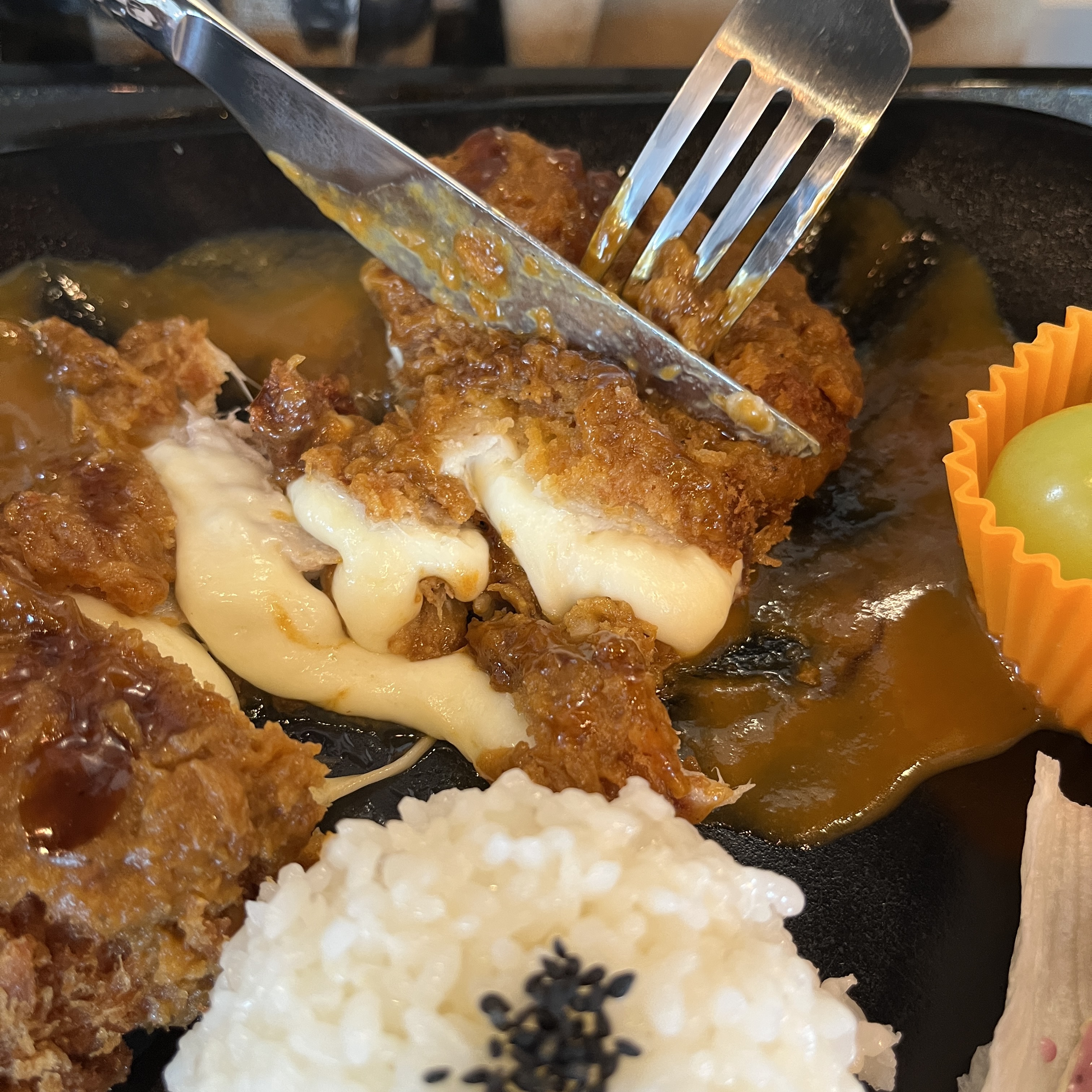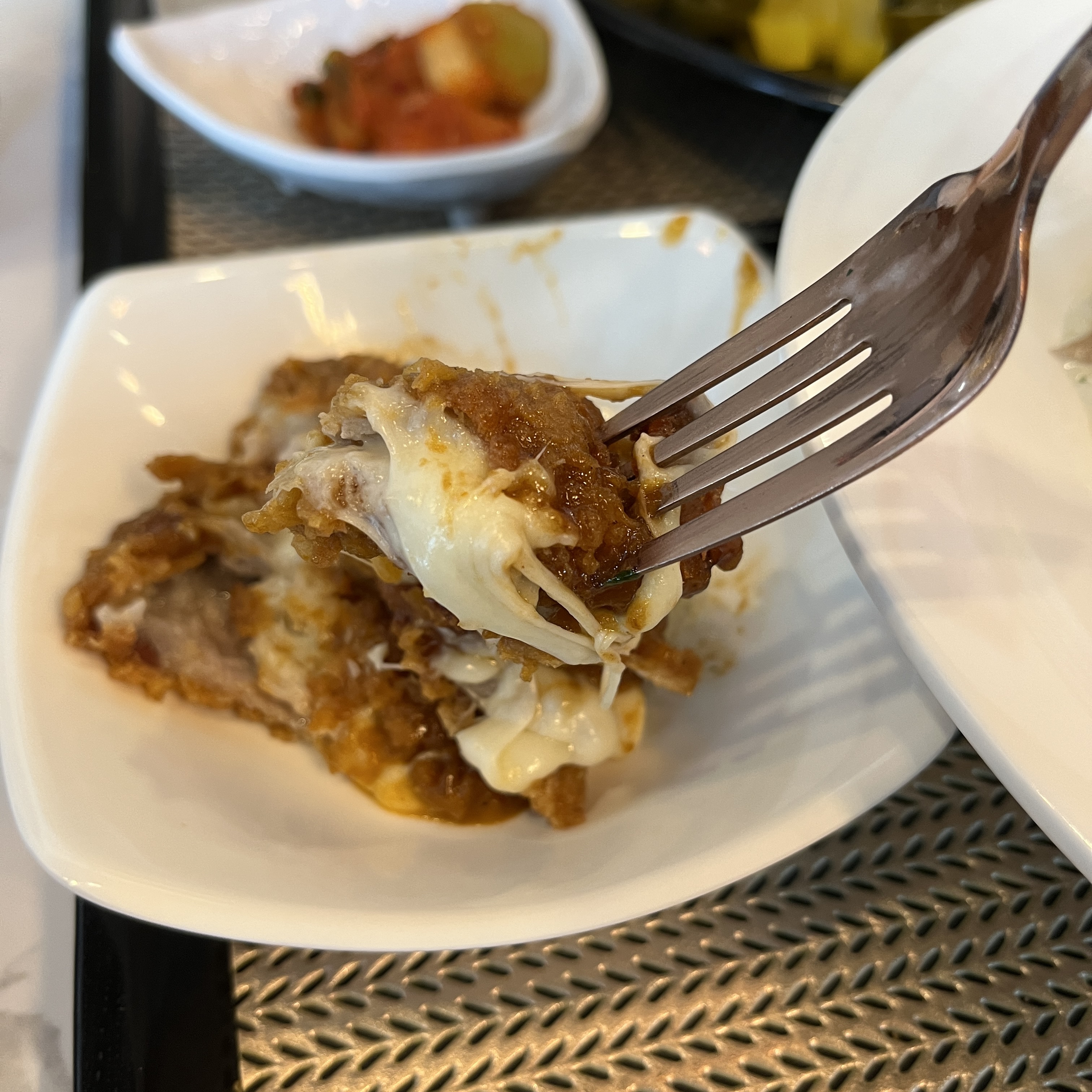 요즘은 동그란 고기 속에 치즈가 들어있는 형태? 가 많이 보이는데, 오랫만에 등심돈까스 고기와 튀김옷 사이에 치즈 들어있는 돈까스를 만났습니다.