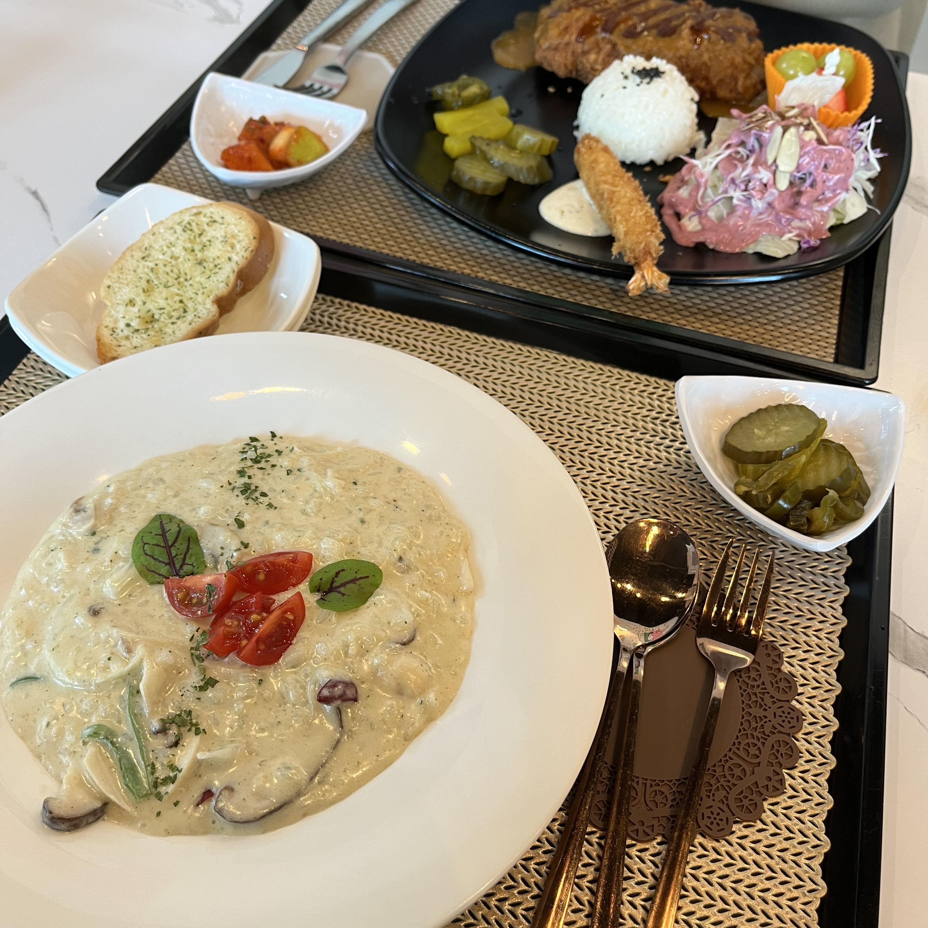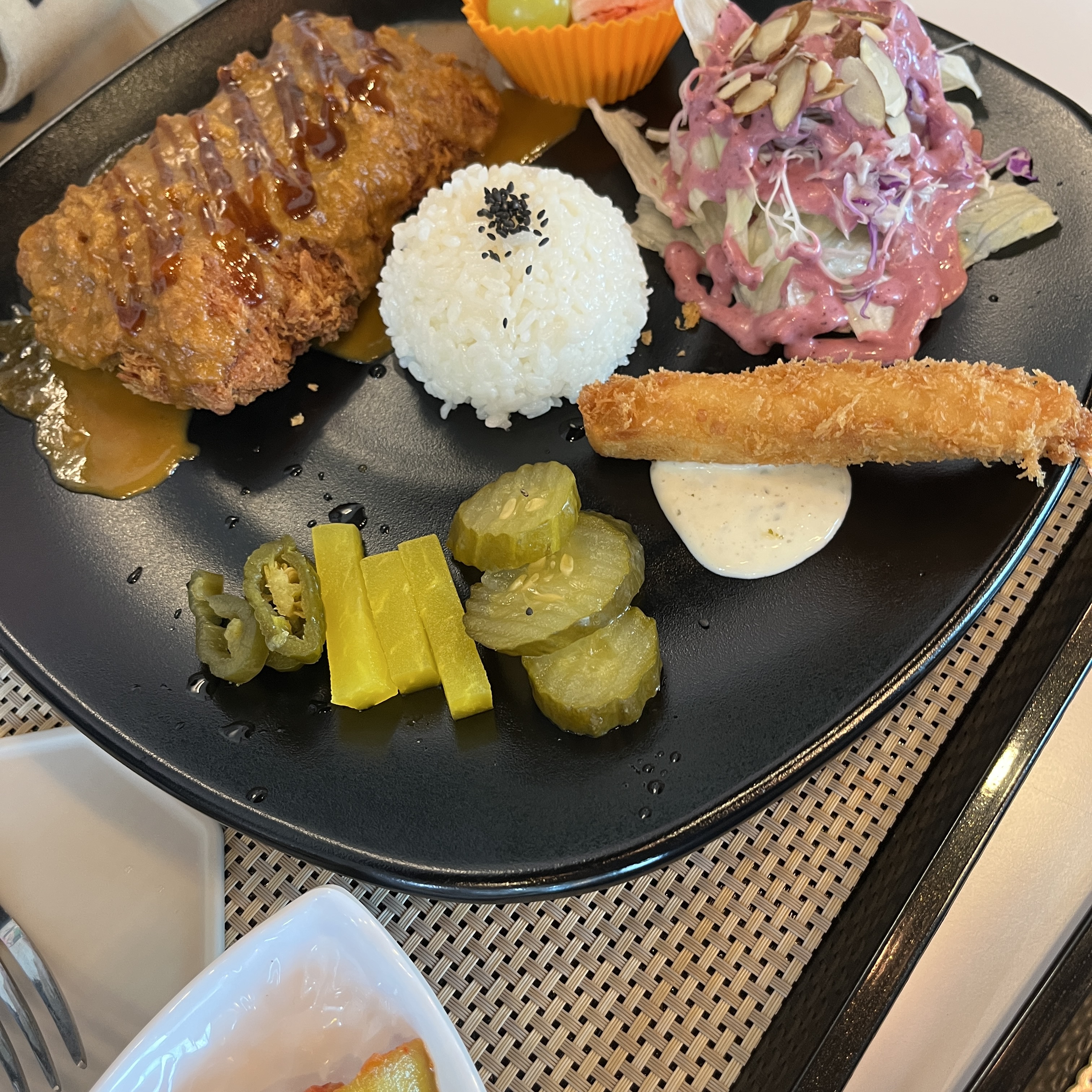 음료 선택한걸 찍는걸 깜밖했네요... 음식 구성은 만족스러웠고, 특히 돈까스의 두터움이 맛이 기대가 됐습니다.