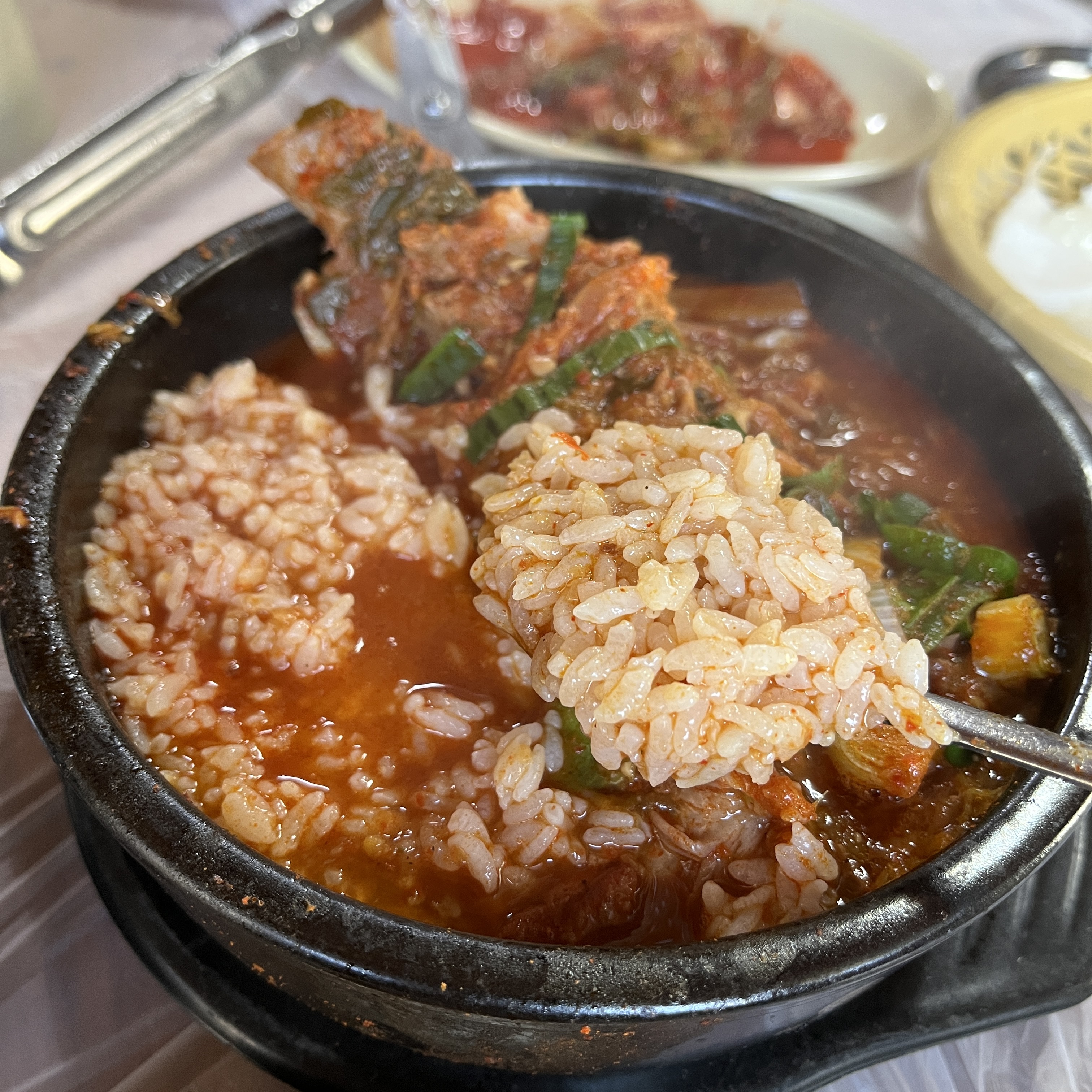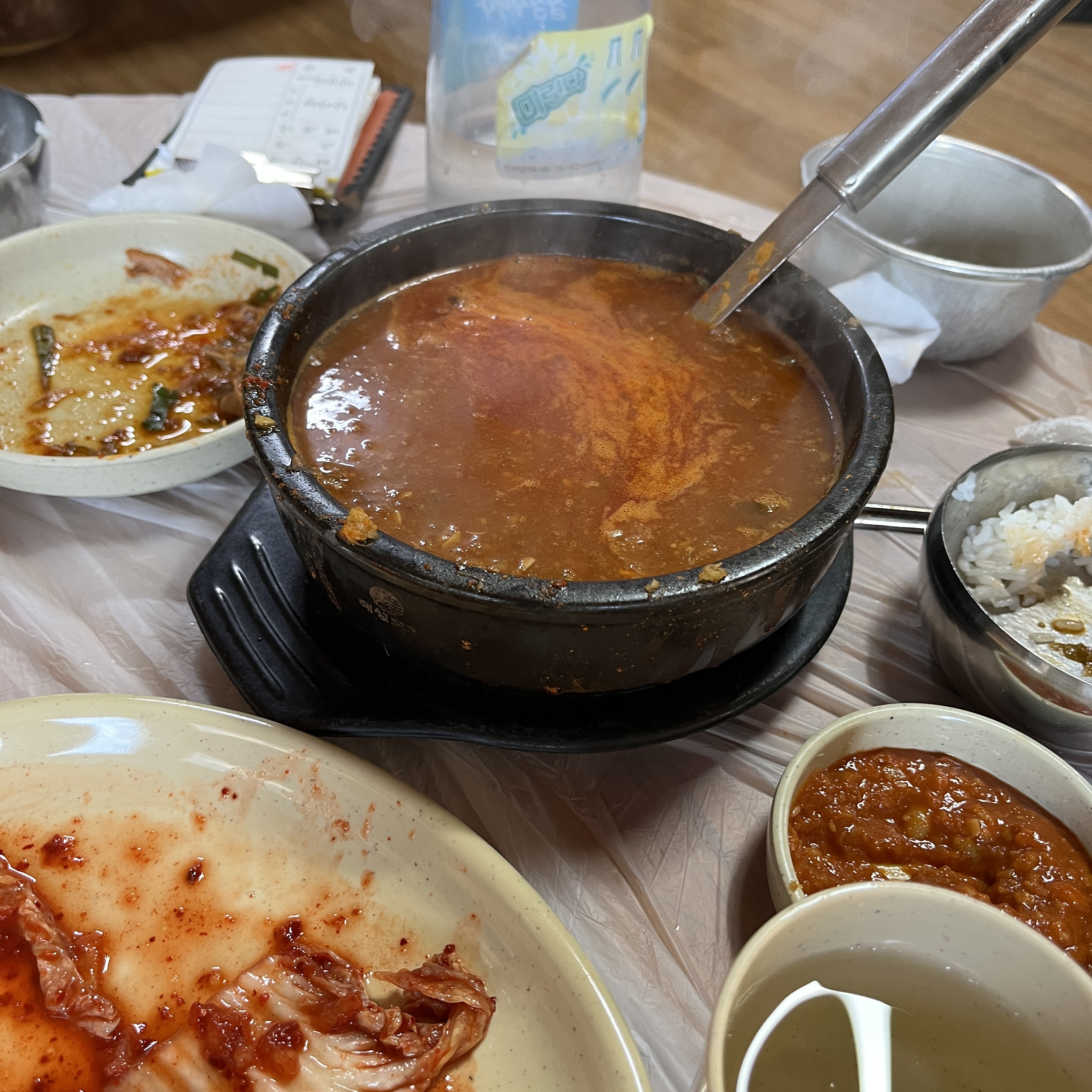 꽤나 얼큰합니다. 청양고추가루 쓰신 것 같은 얼큰함이었어요. 아이들은 잘 못먹을 것 같기도 했는데, 옆에 가족이 먹고 있었는데 아이들 잘 먹긴 하더라고요~