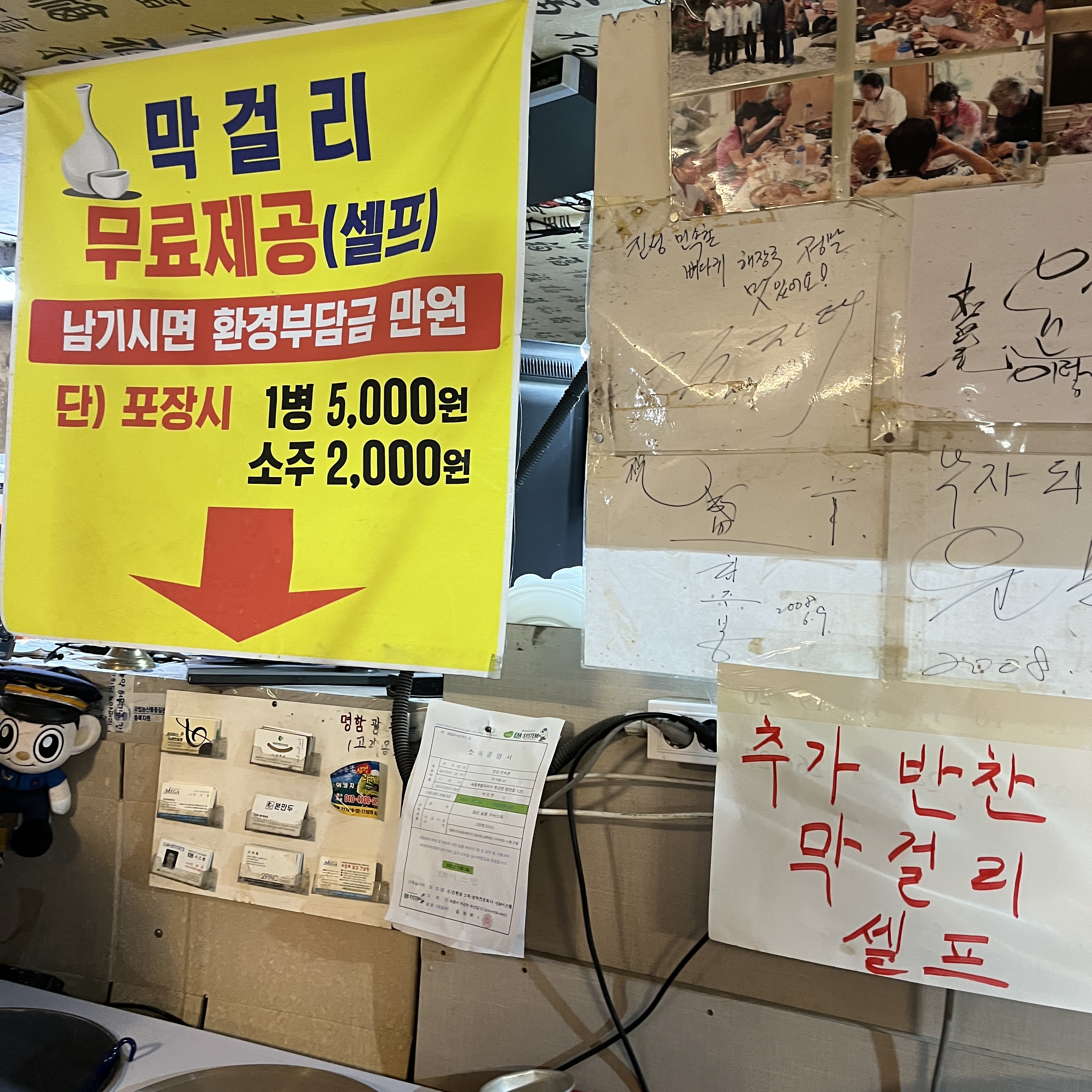 막걸리가 공짜에요...