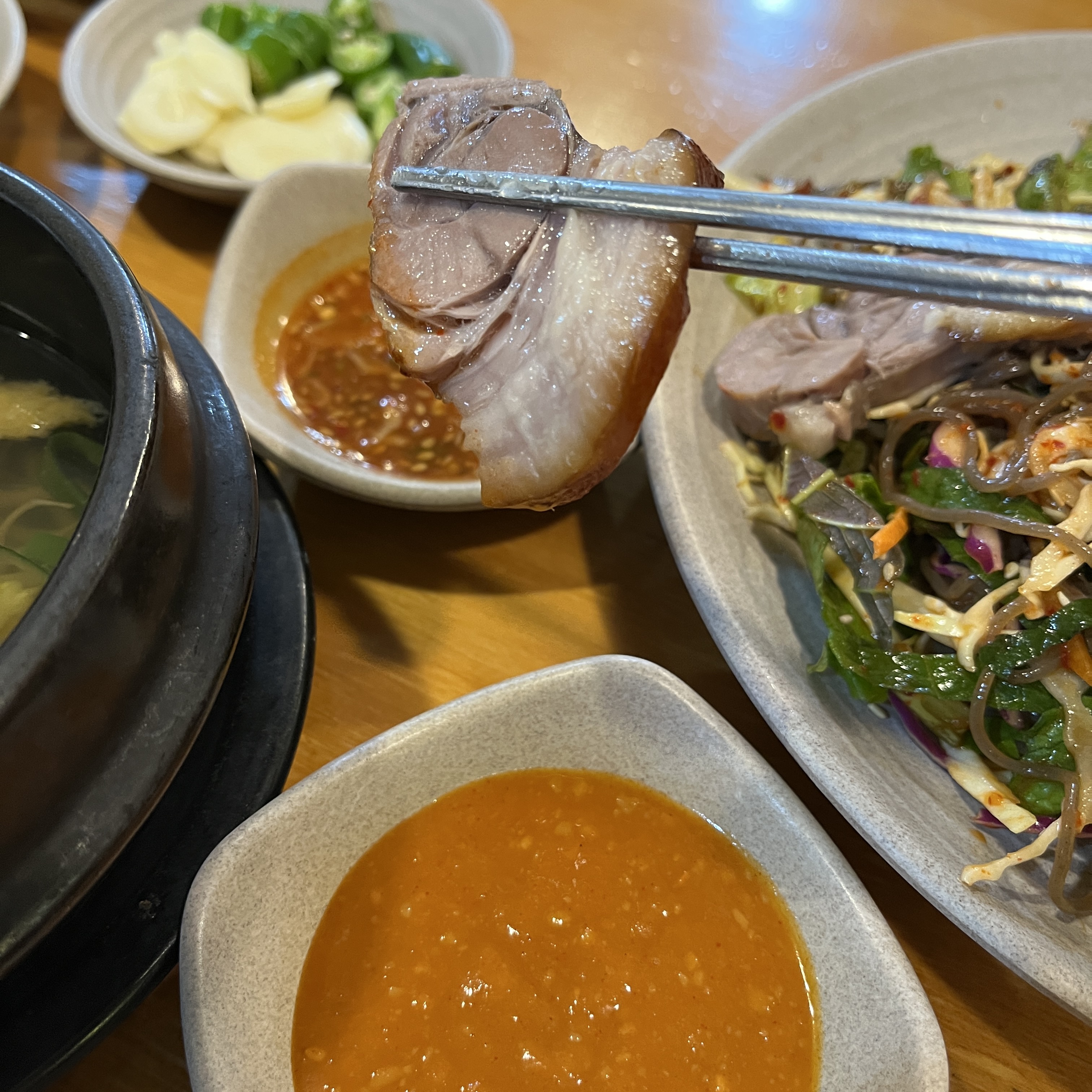 족발이 아주 미쳤습니다. 살코기부터 해서 겁나 부드럽고, 적다이 지방도 껴있어서 고소한맛도 아주아주 좋습니다.