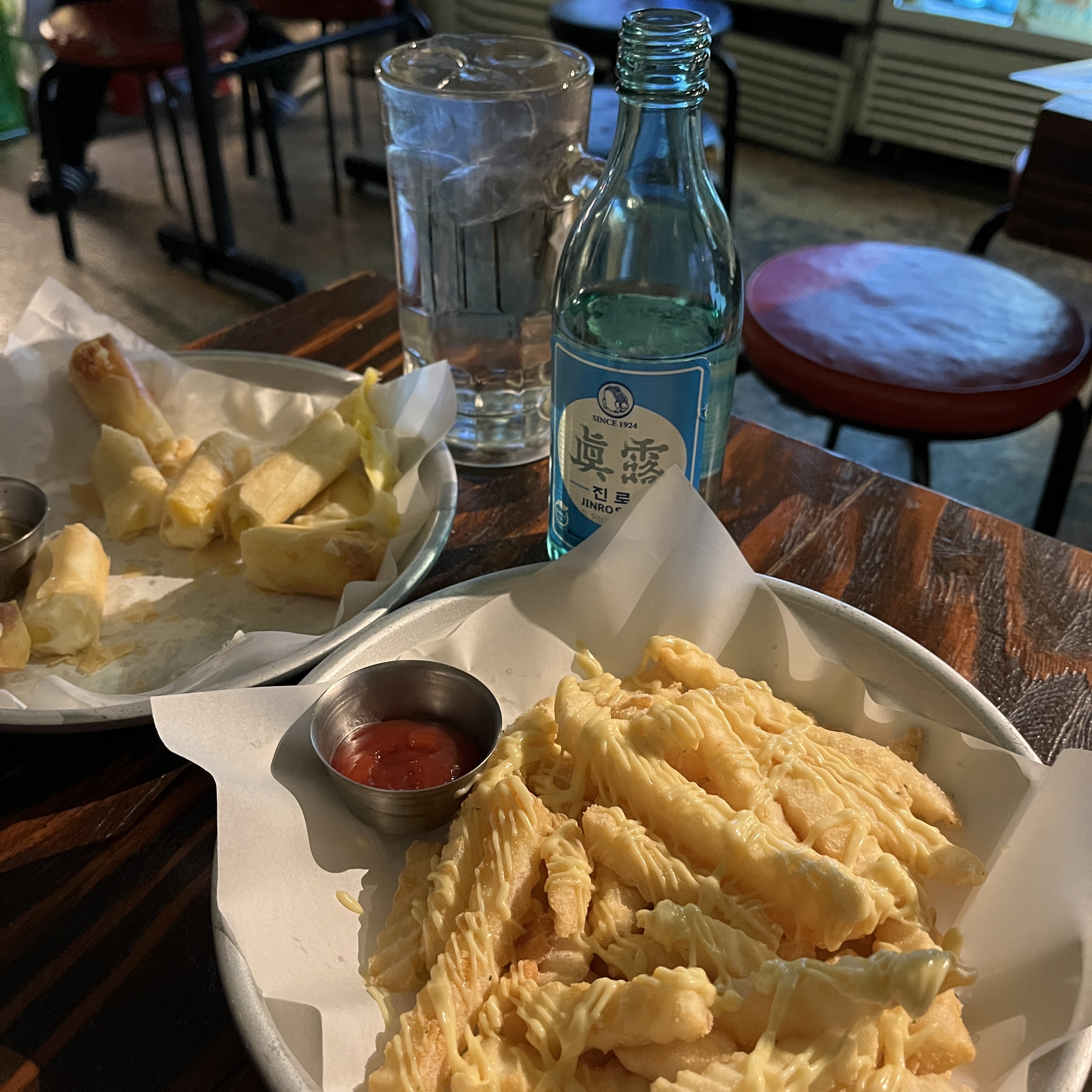 주로 튀김류와 마른안주류로 준비되어 있고, 정말 가볍게 술 한잔에 감자튀김 하나 집어먹으며 대화하기 좋은 공간입니다.