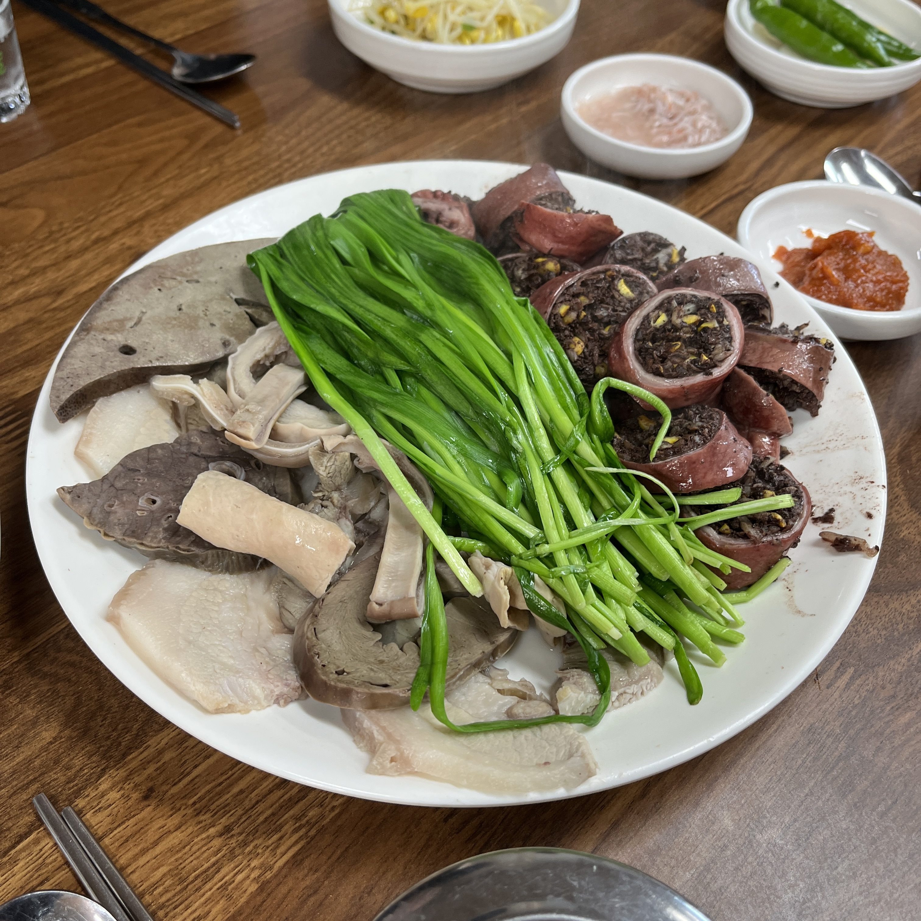순대에 부추 살짝 감아서 초장 살짝 찍어먹으면.. 키야..