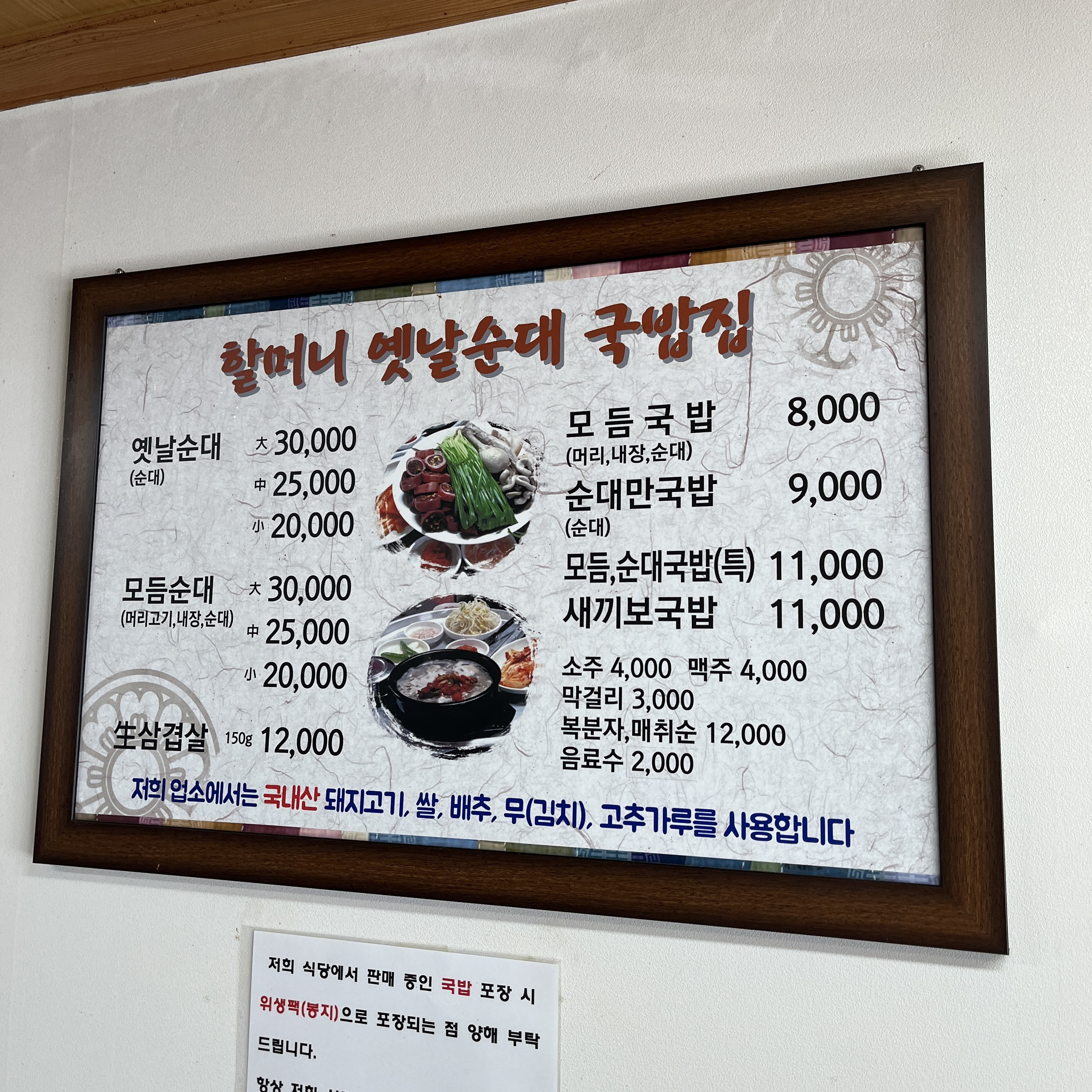 할머니옛날순대국밥집(신한식당) 메뉴입니다.