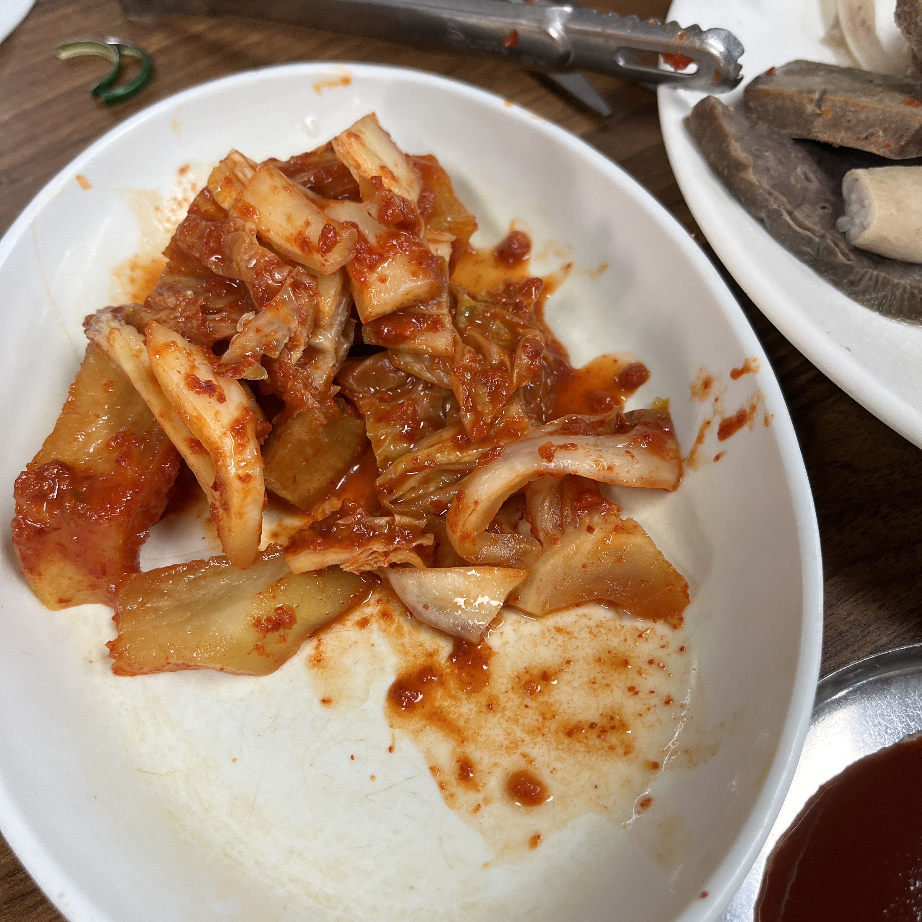 김치도 적당히 시원하고, 잘 익어서 순대랑 곁들여먹기 좋았구여!
