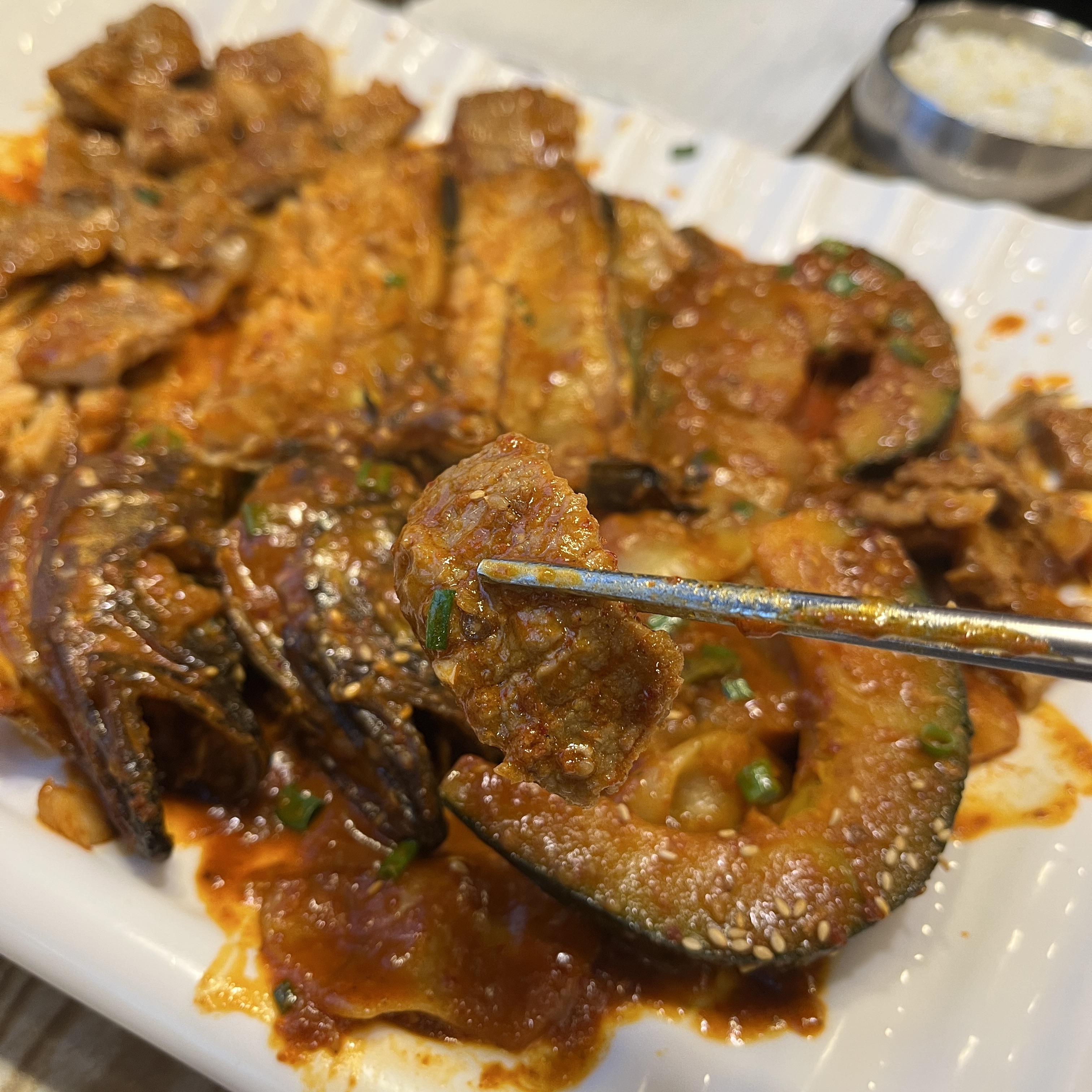 그냥 명태조림과 차이점은 돼지갈비가 추가되어 있고, 저 단호박도 그냥 명태조림엔 없더라구요.