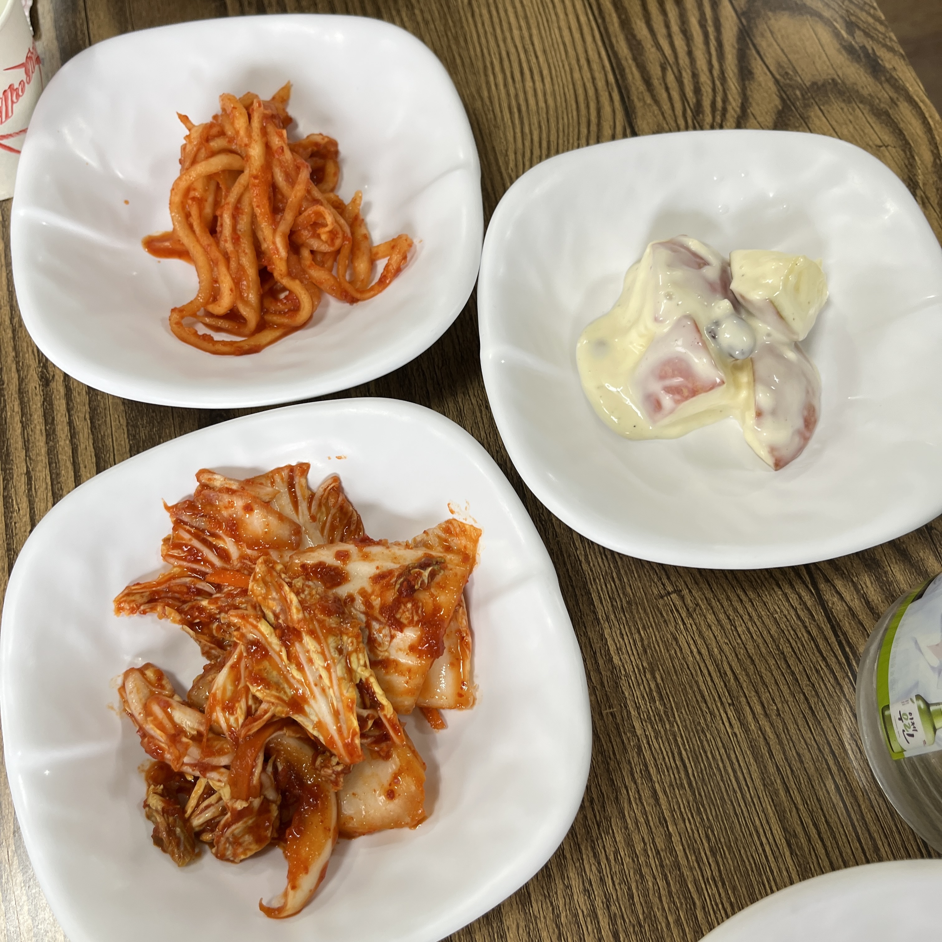 김치, 무생채 그리고 샐러드입니다.