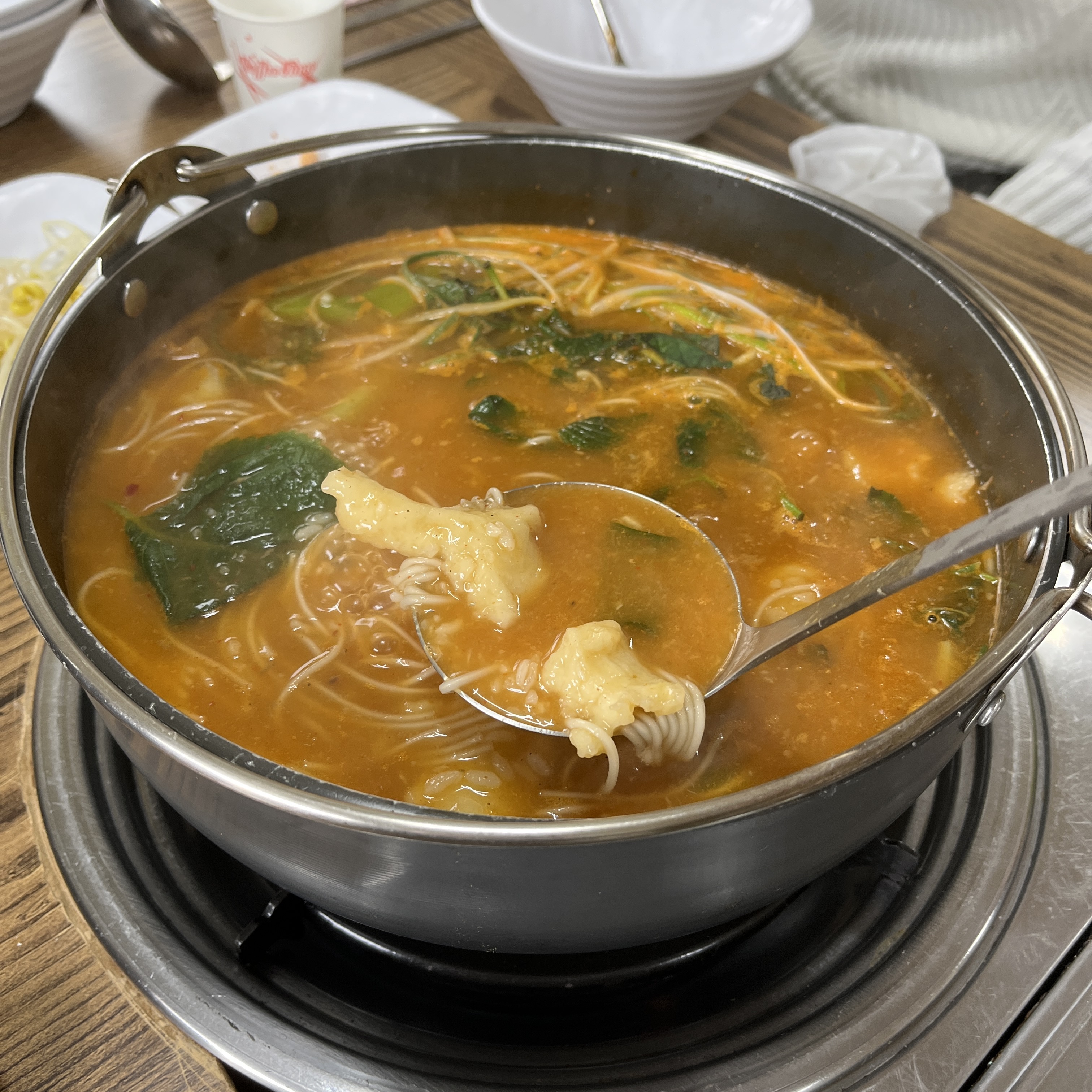 엄청 얼큰합니다. 뒷맛 오래가는 매운맛이 아니라 목을 탁 치고 들어가는 매운맛이라 너무 맵지도 않게, 중독성있게 먹을 수 있었습니다.