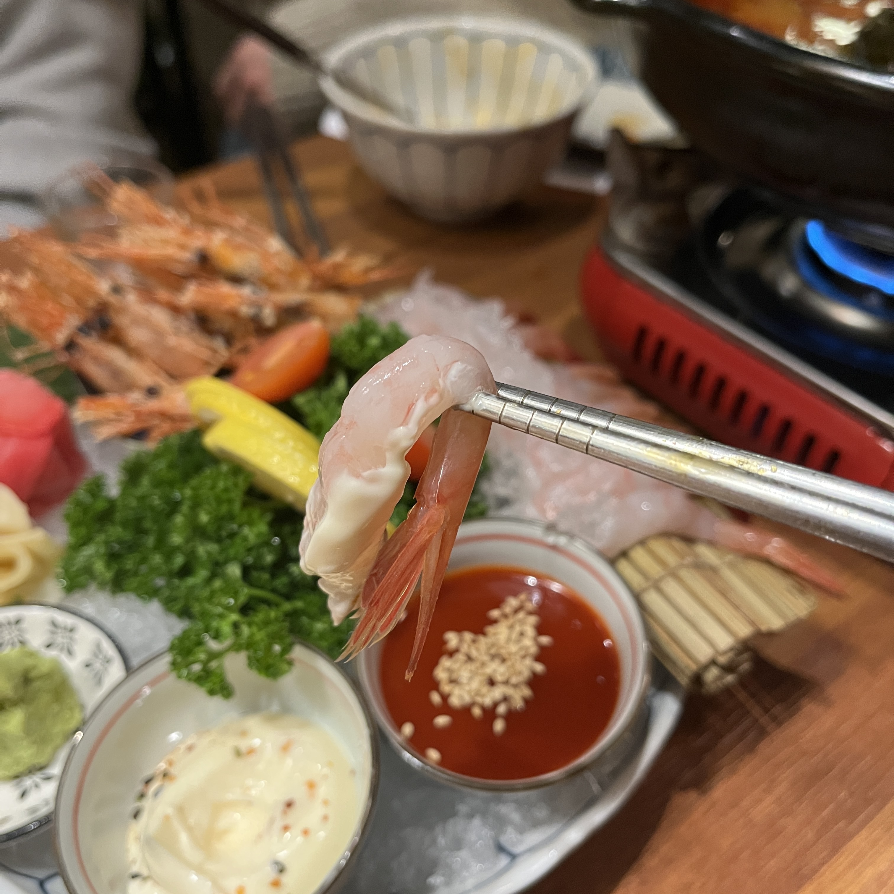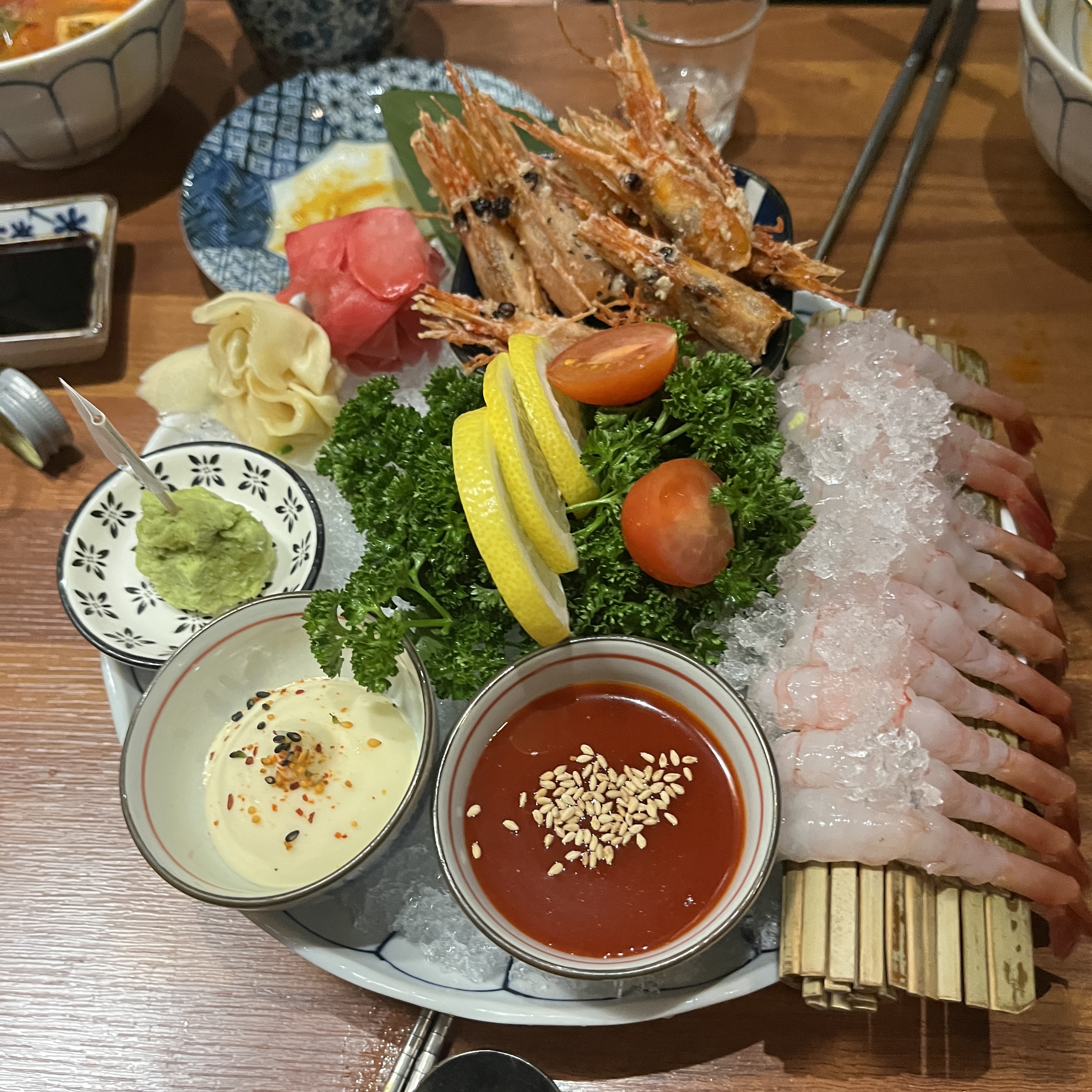 특히 저 마요네즈 소스와 조화가 너무 좋았어요. 다른 해산물들도 궁금해지는 단새우회였습니다.