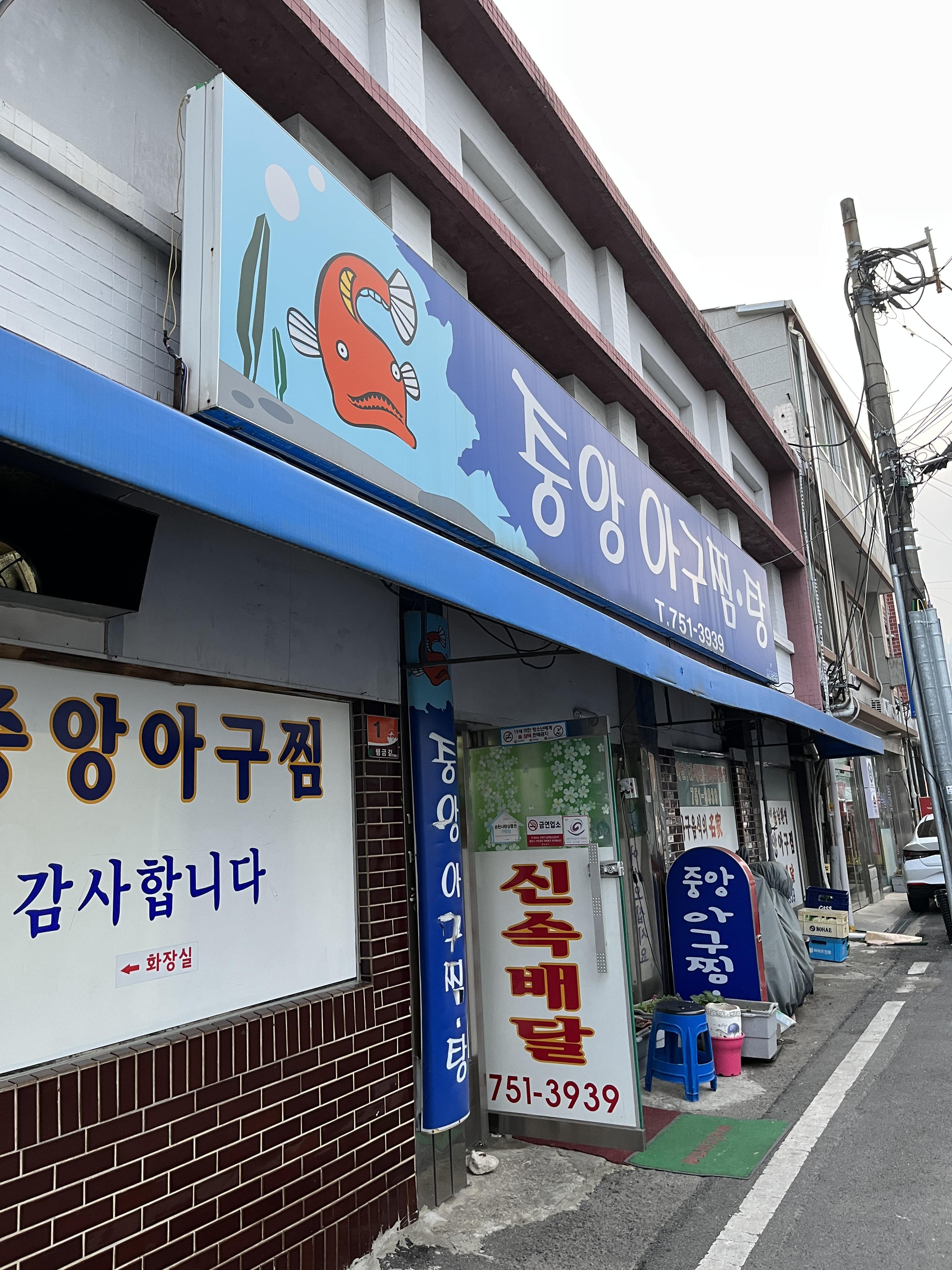 순천 중앙동, 순천의료원 근처에 있는 아구찜 맛집 '중앙아구찜탕'입니다.