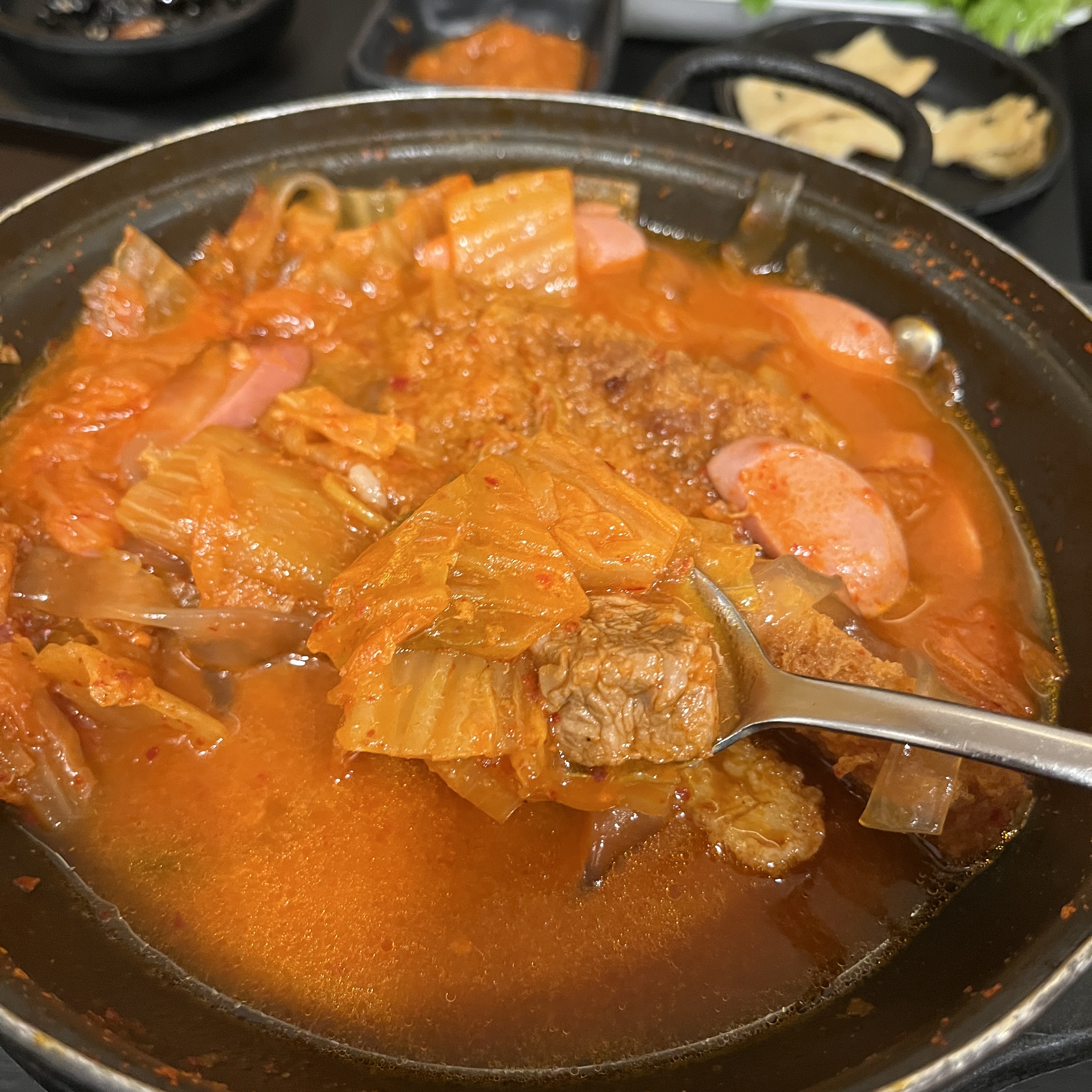 딱 무난한 신김치에 끓인 김치찌개같은 부대찌개같은... 오묘한 느낌 ㅋㅋ