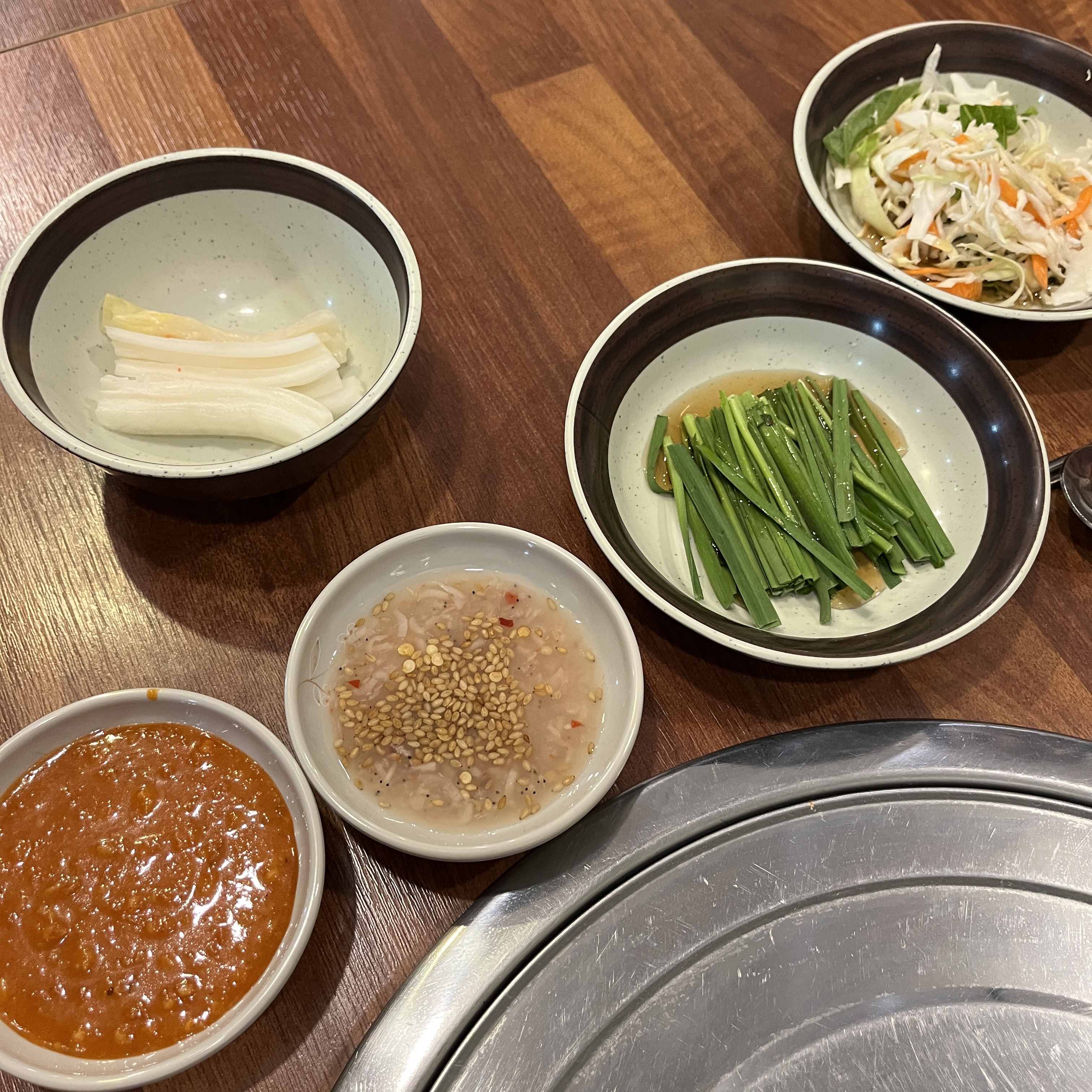 기본 반찬입니다. 반찬은 셀프로 리필이 가능합니다.