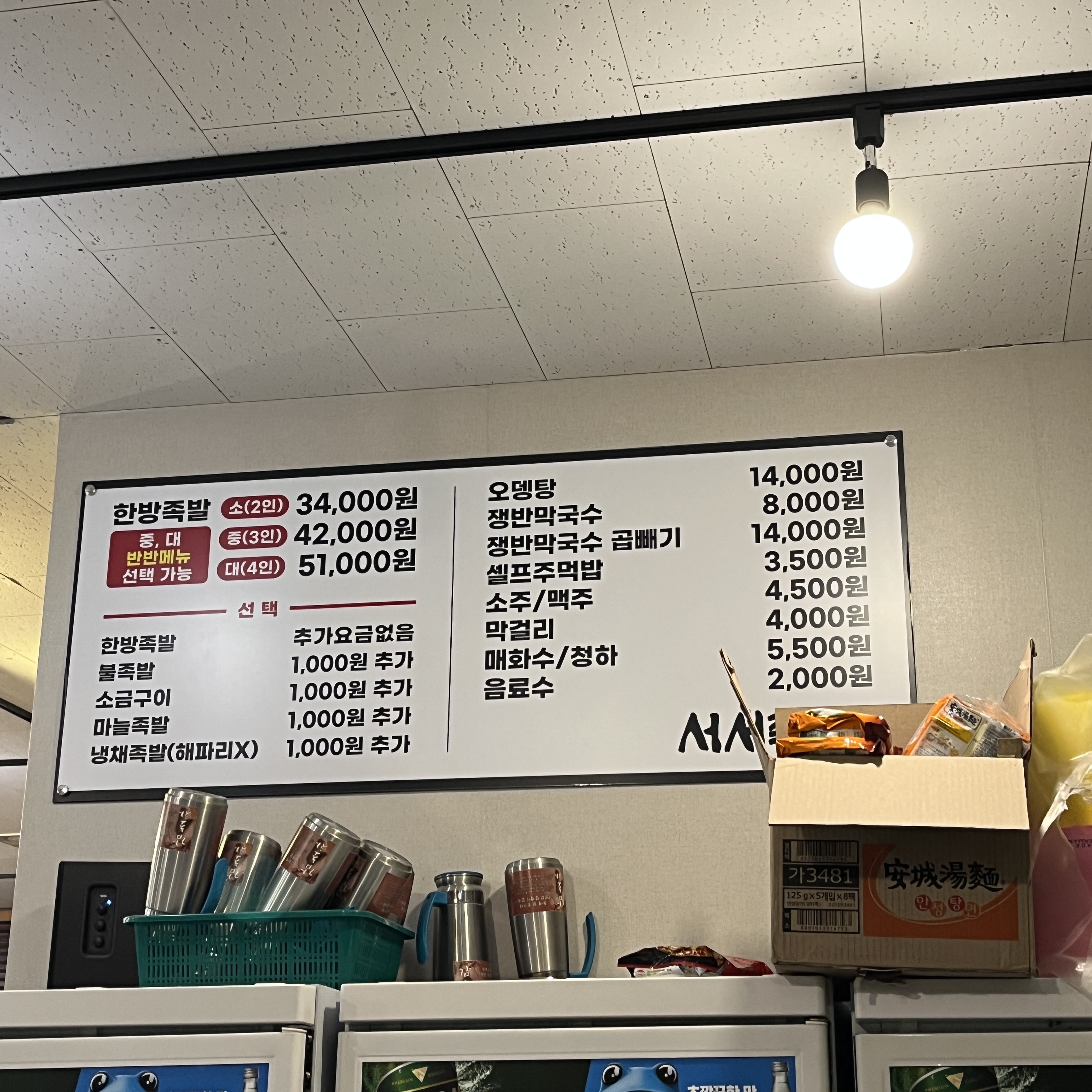 서서족발 메뉴입니다.