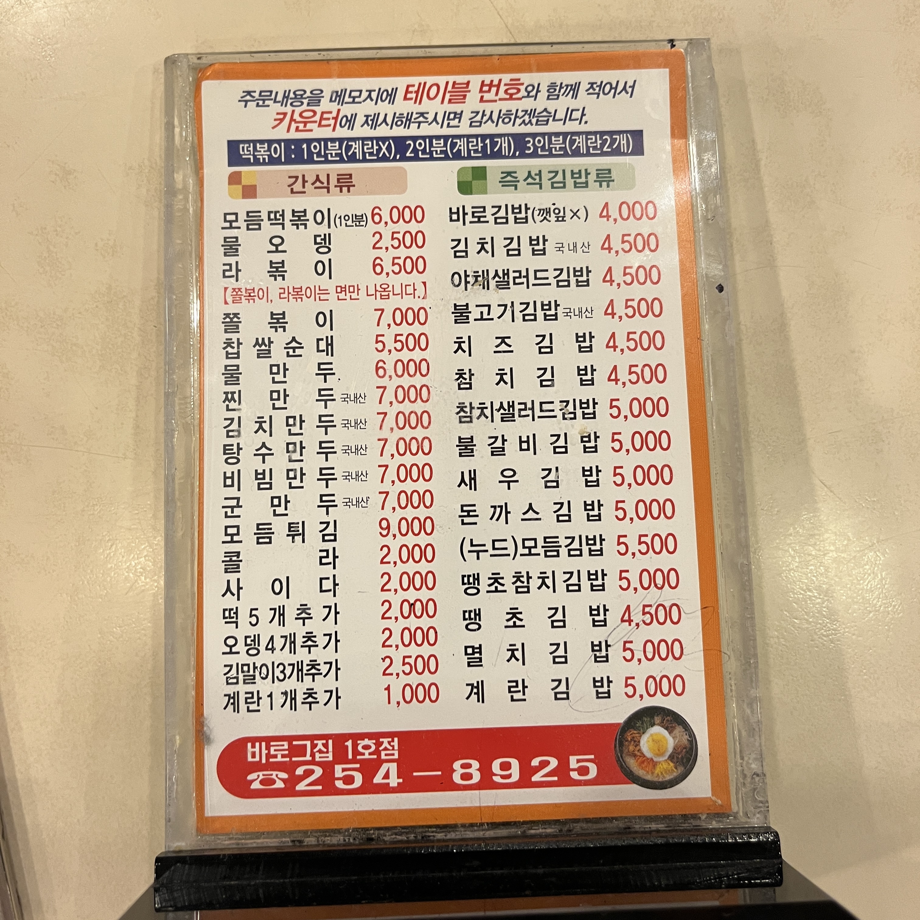 주문은 테이블에 비치되어 있는 메모장에 적어서 가져가서 하시면 됩니다.