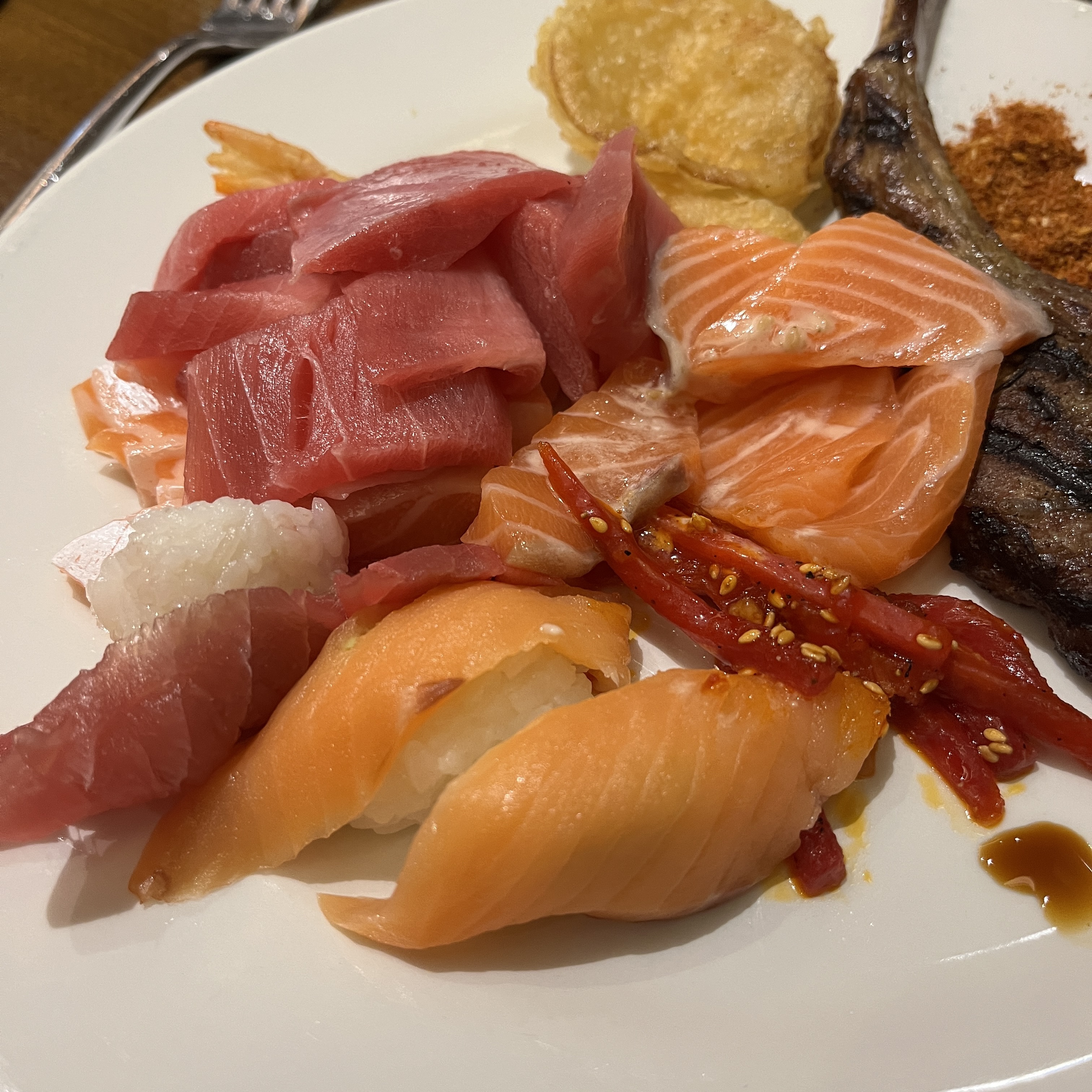 보통 뷔페에서 참치는 안먹거든요. 퀄리티가 의심이되서.. 이곳 씨카페는 참치 때깔이 아주 믿고 먹을 수 있는 때깔이어서 잔뜩 먹었습니다.