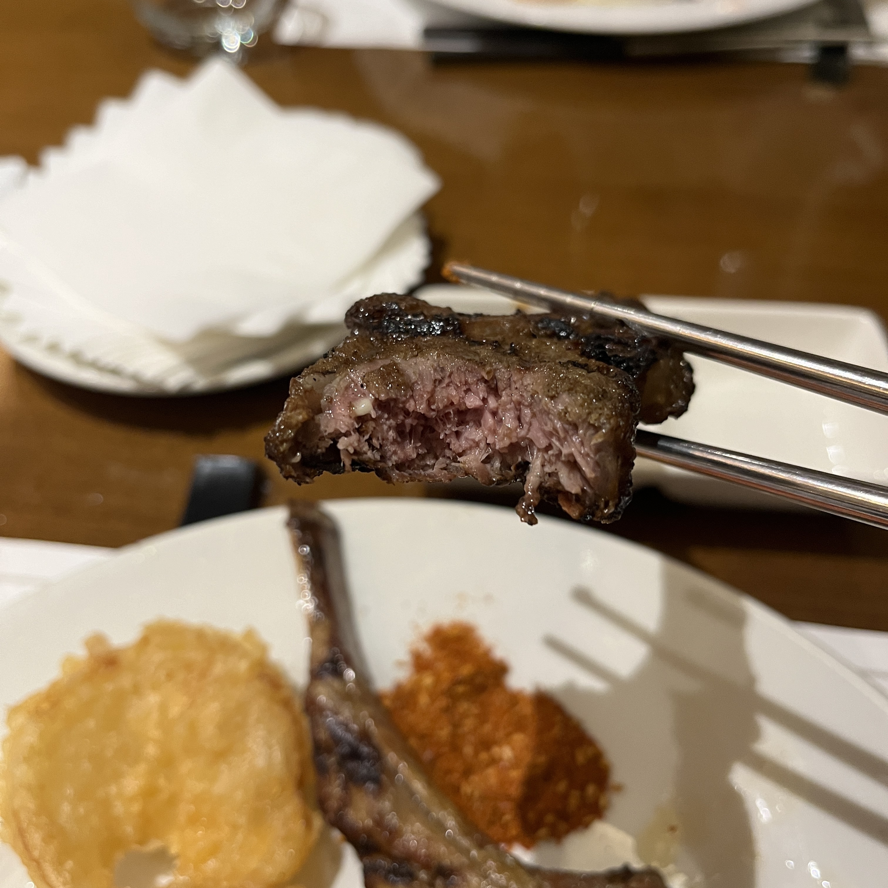 너무나 잘 구워진 양갈비가, 끊어지지 않고 꾸준히 구워주셔서 부족함 없이 먹을 수 있었습니다!