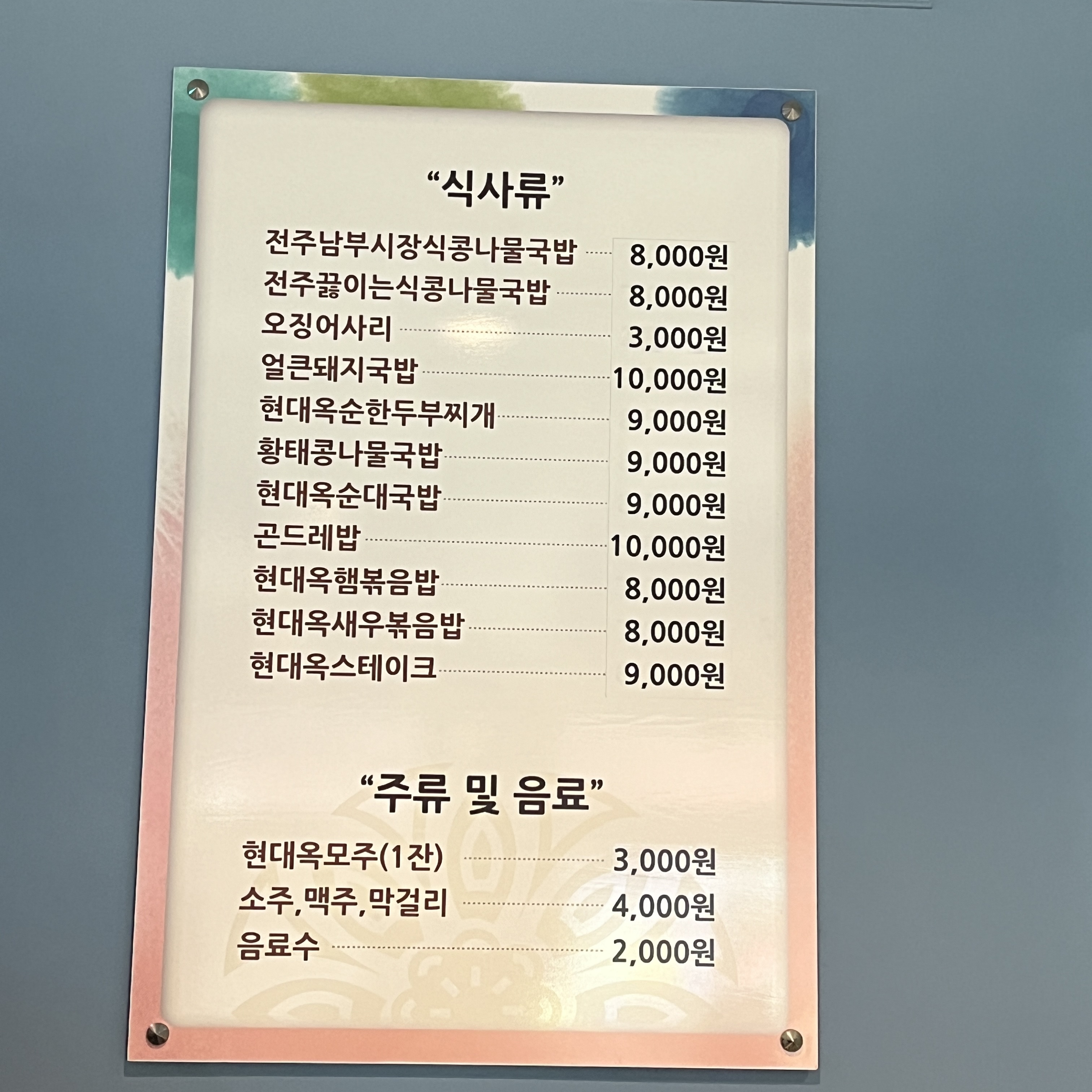 현대옥 메뉴입니다.