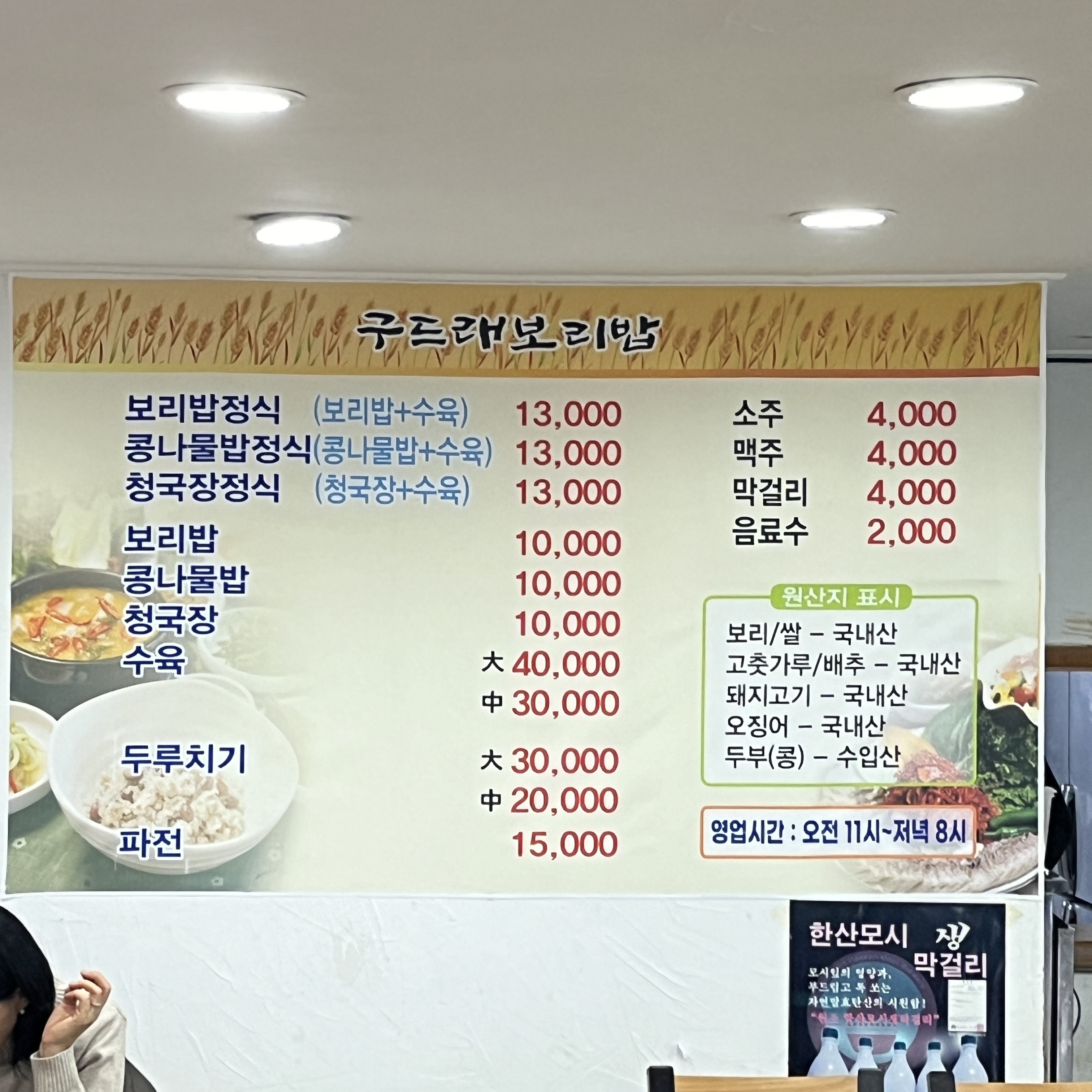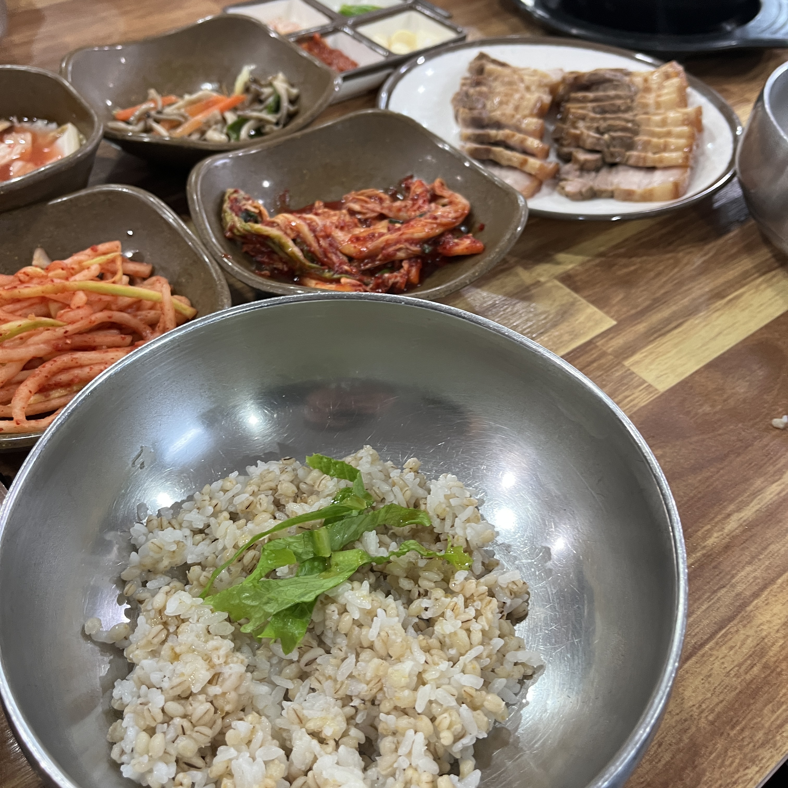 보리밥에 수육까지 합쳐서 13,000원입니다. 저흰 정식 4인분 먹었습니다~