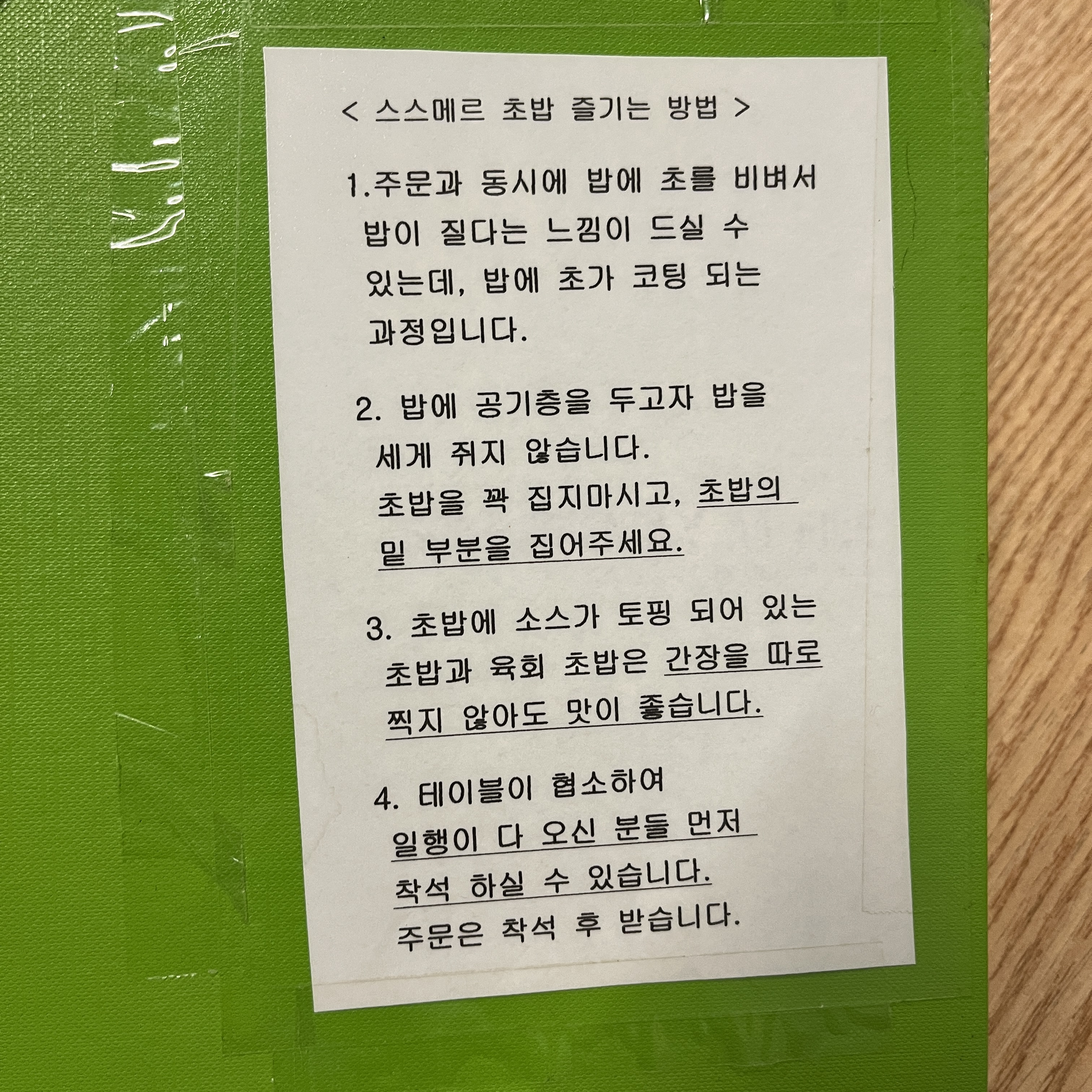 아니 밥이 질다는 느낌을 받았는데, 스스메르 초밥 즐기는 방법 1번에 써있었네요 ㅋㅋㅋ