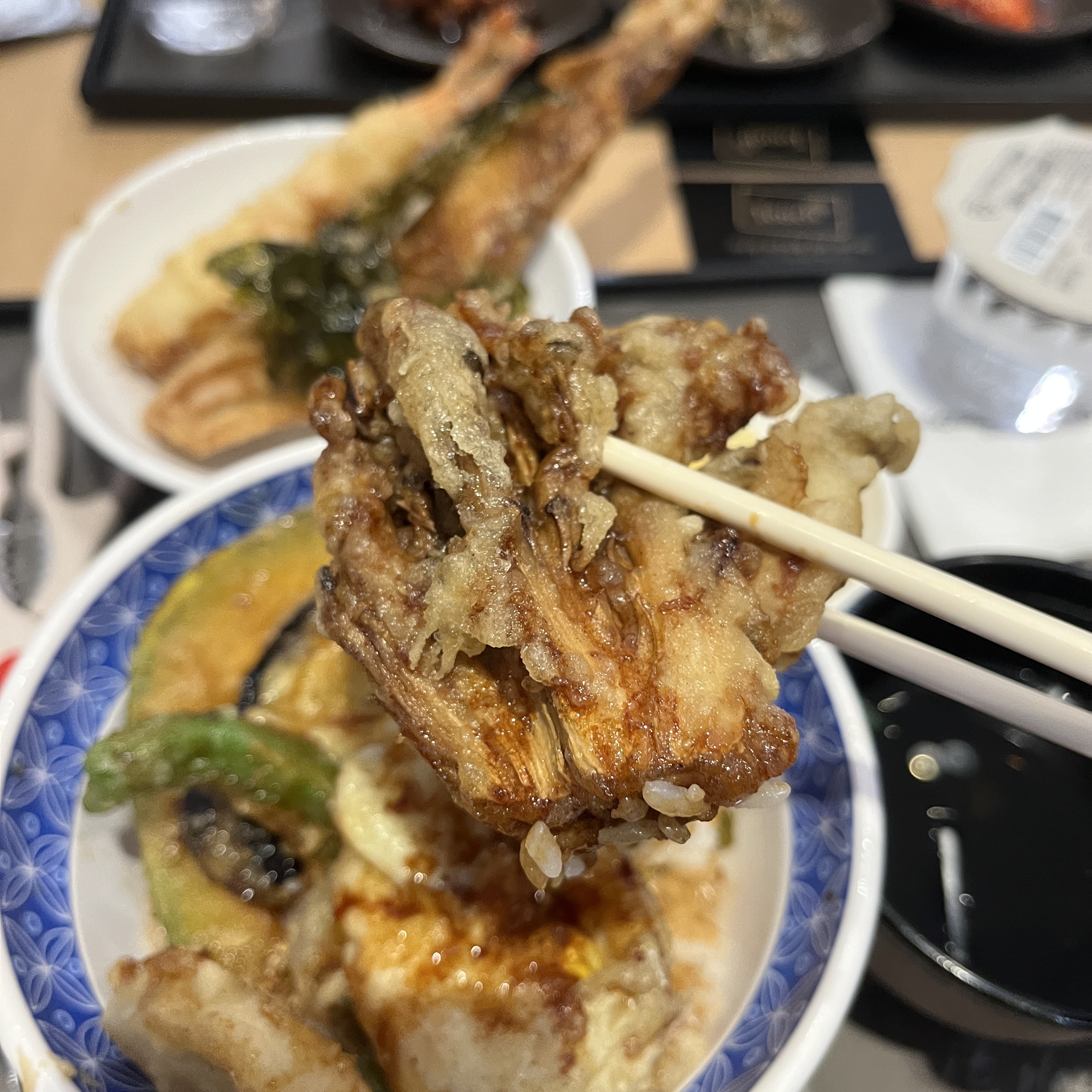 보통 팽이버섯 튀겨주는 곳 많이 봤는데, 느타리버섯도 텐동에 아 주 잘 어울리는 버섯이더라구요.