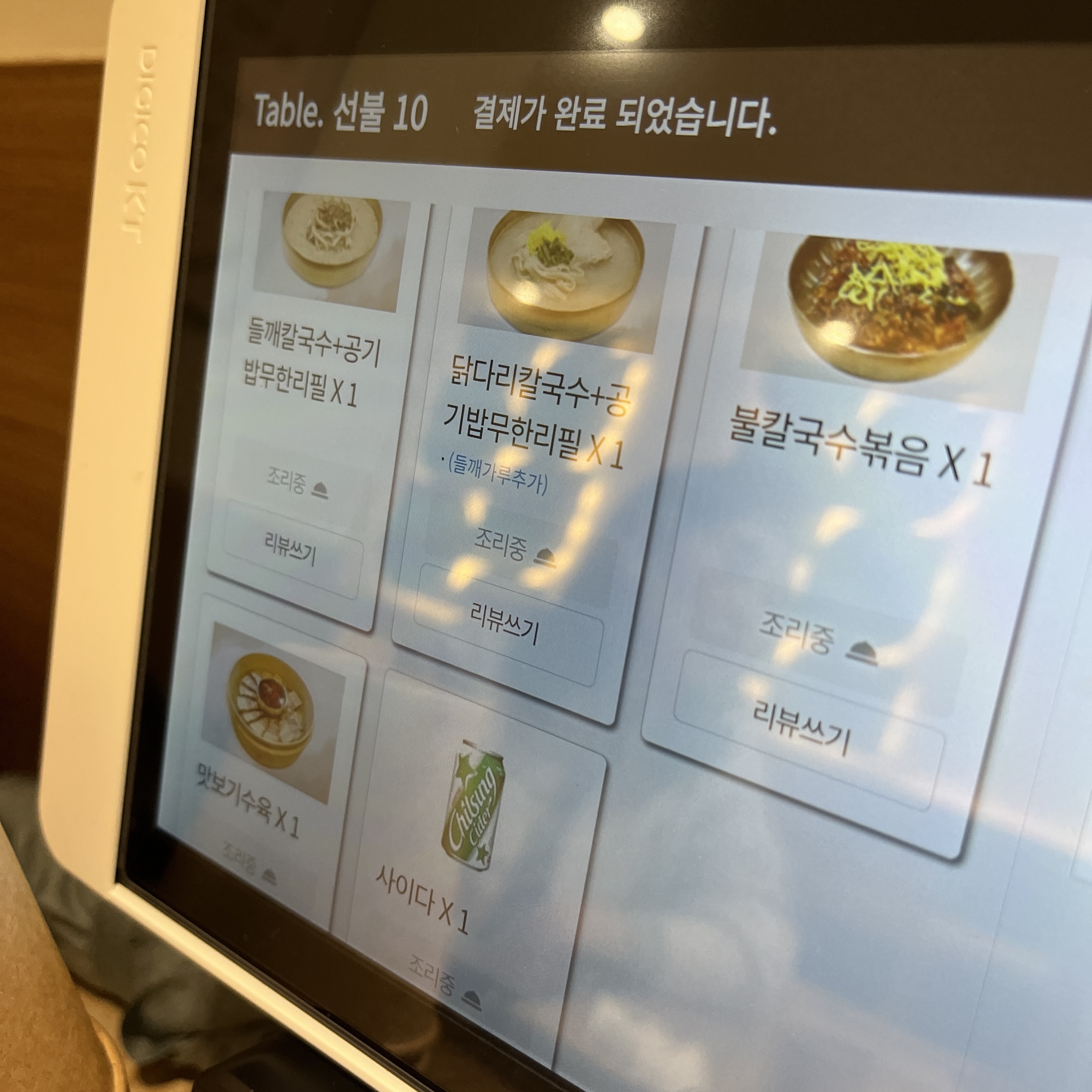 제가 시킨 닭다리칼국수와 맛보기수육입니다.