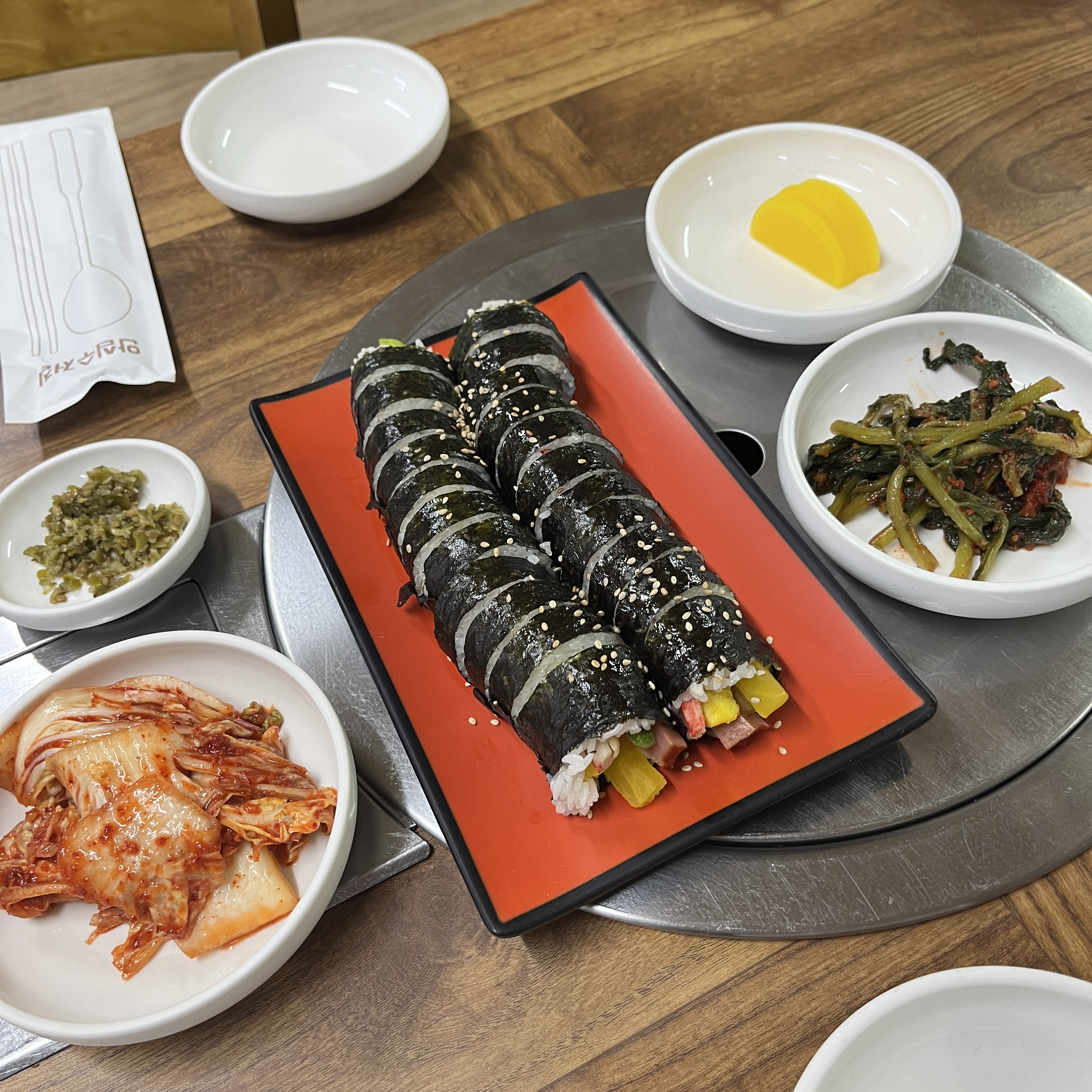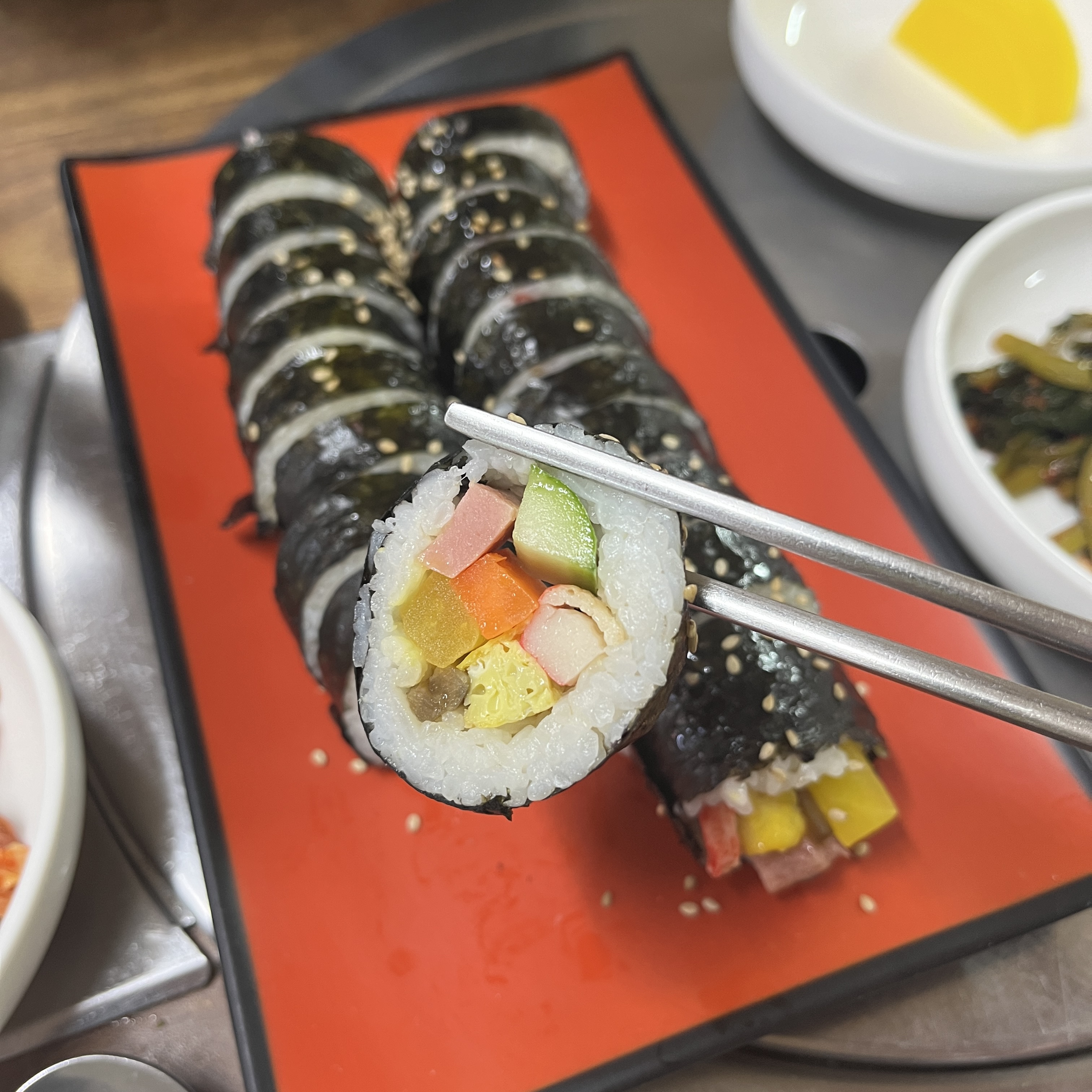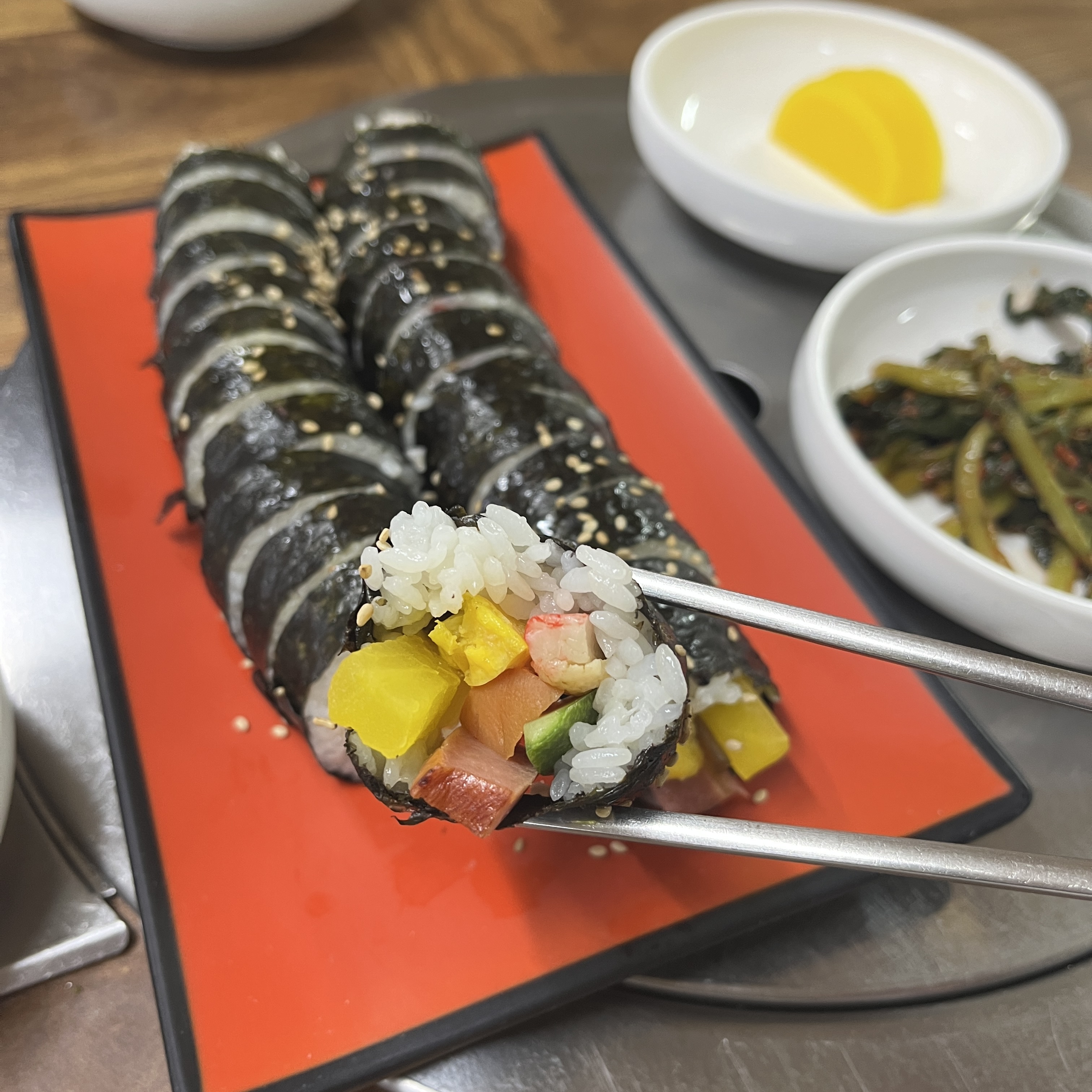 김밥은 여러분이 생각하시는 딱 정석적인 김밥입니다. 어렸을 때 소풍갈 때 엄마가 싸주던 김밥이 떠오른달까요?
