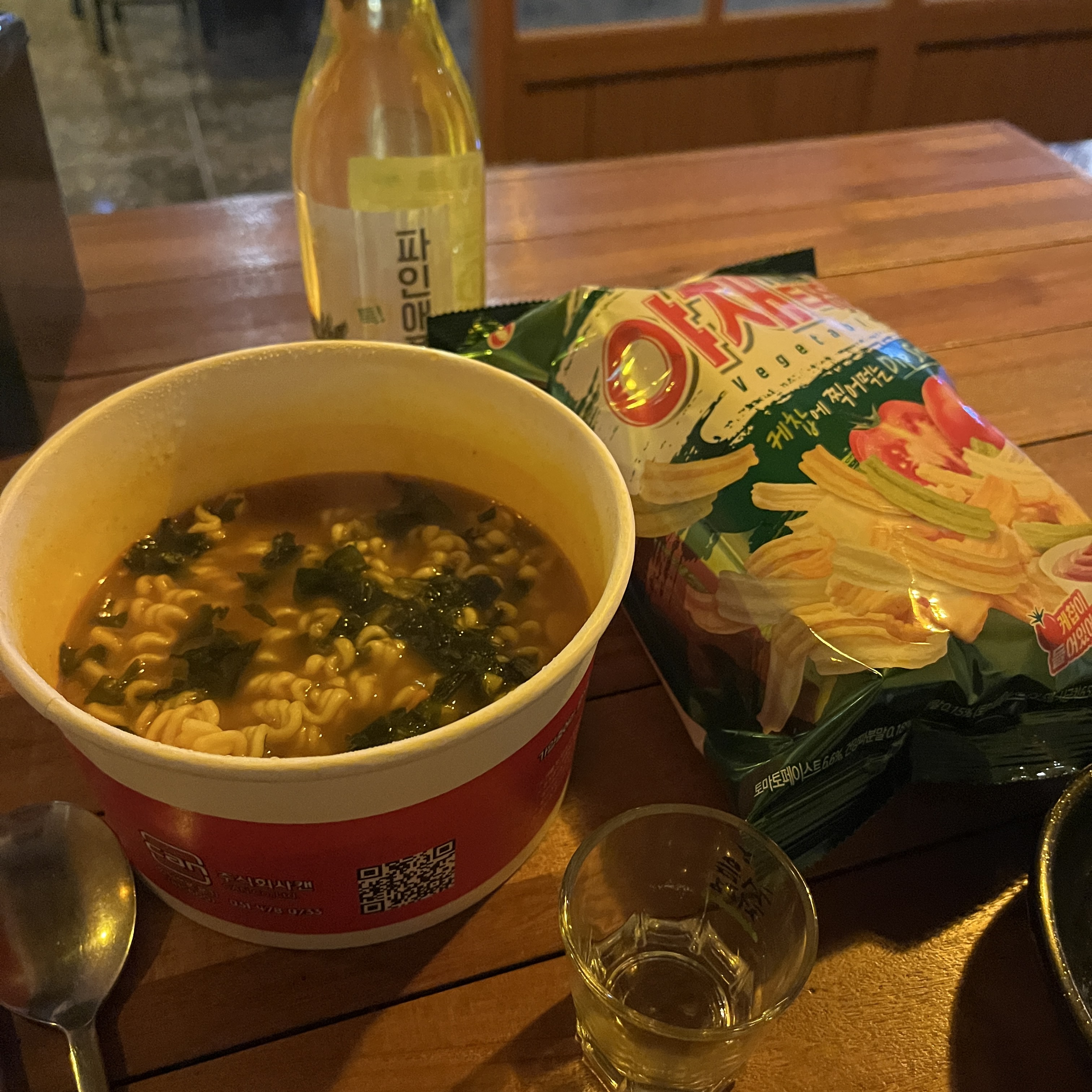 저는 이날 아무것도 안사가서 야채타임 한개와 오동통면 한개 사서 먹었습니답.