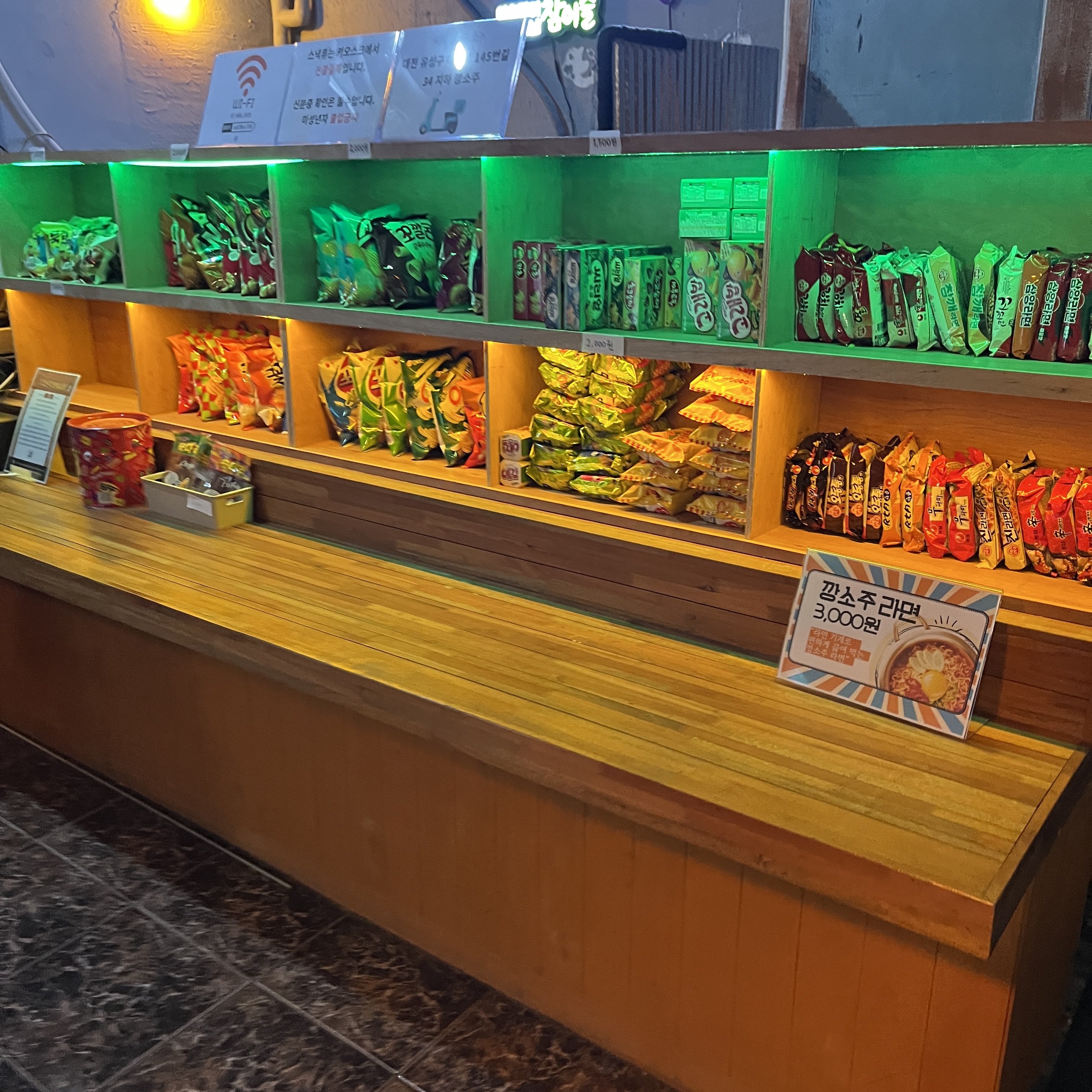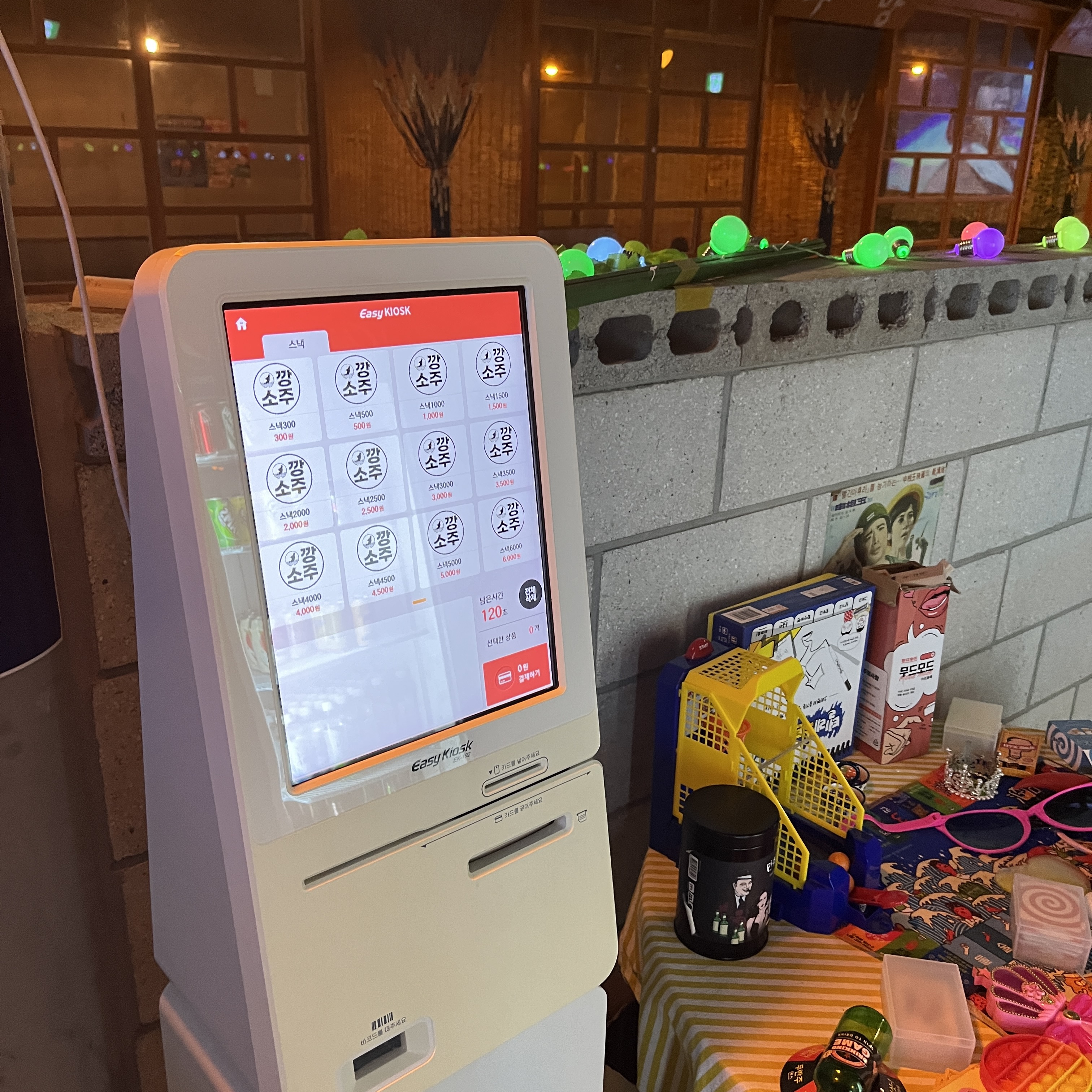 안주를 이곳에서 사서 먹을 땐 요 키오스크에서 가격이 적혀있는 만큼 눌러서 선불로 계산하고 가져가시면 됩니다.