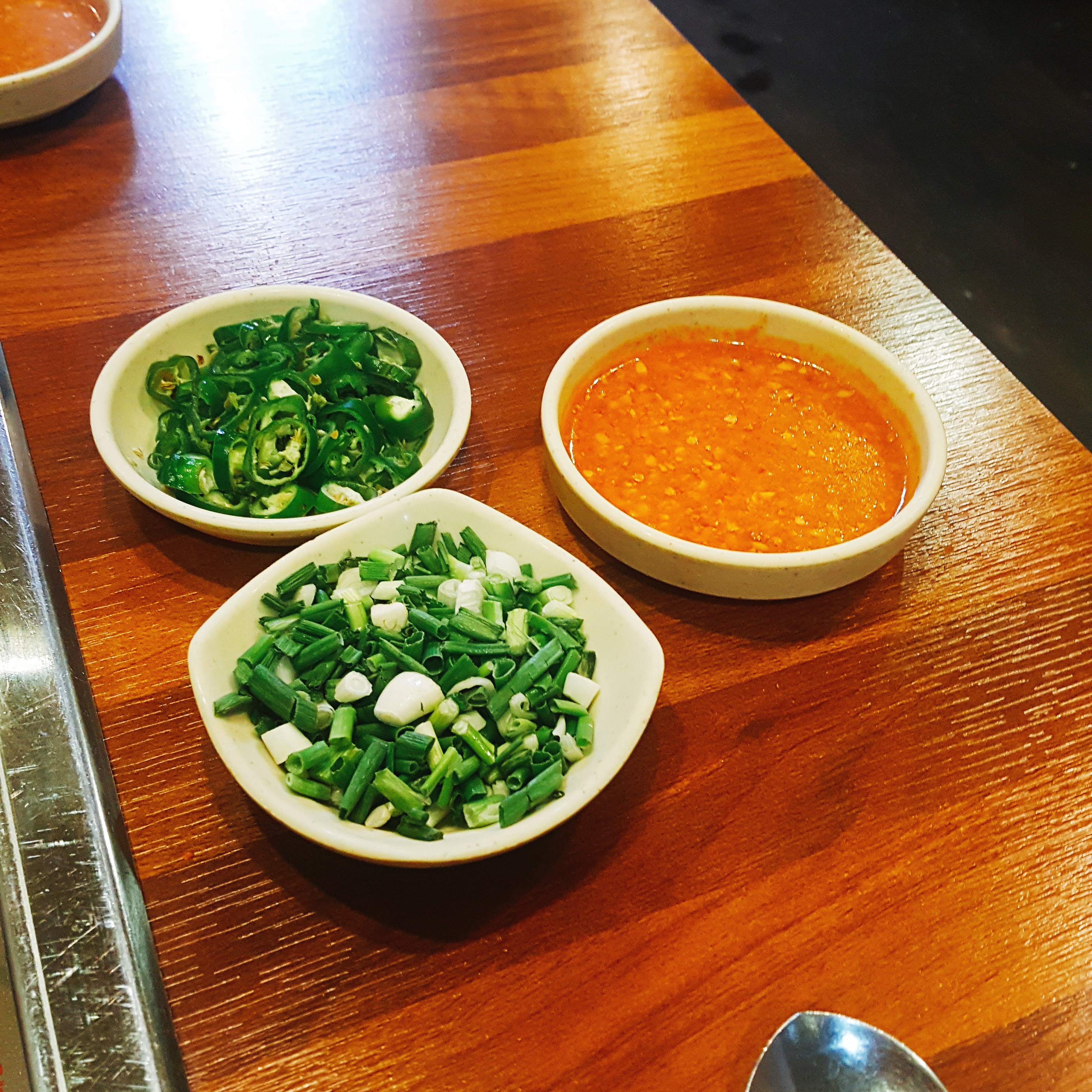 이렇게 쪽파, 막장, 고추를 따로주셔서 기호에 맞게 소스를 만들어먹을 수 있습니다.