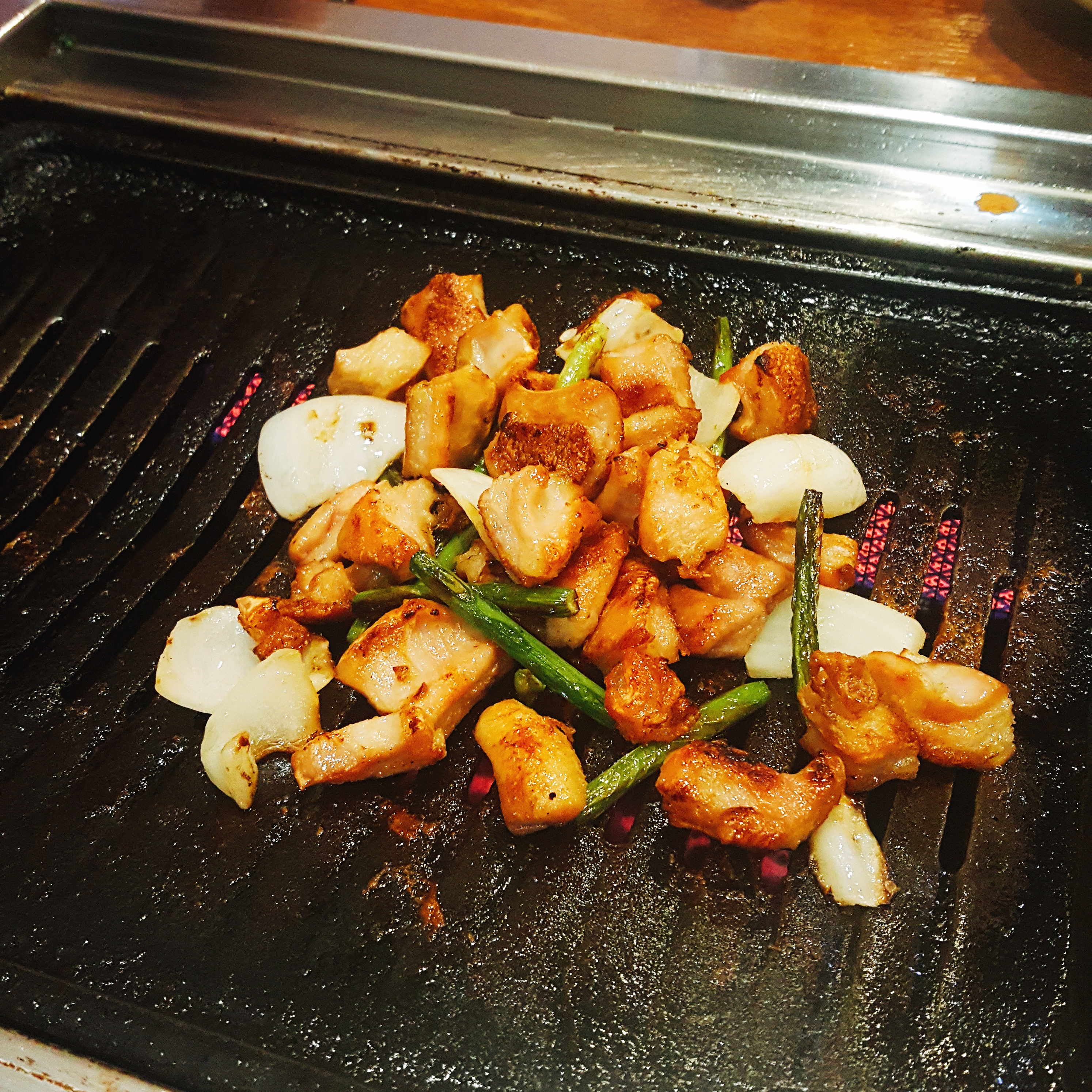 막창 외에 양파, 마늘쫑? 저게 고구마순인가요 마늘쫑인가요.. 무튼 같이 넣어주셔서 좀 특이했습니다.