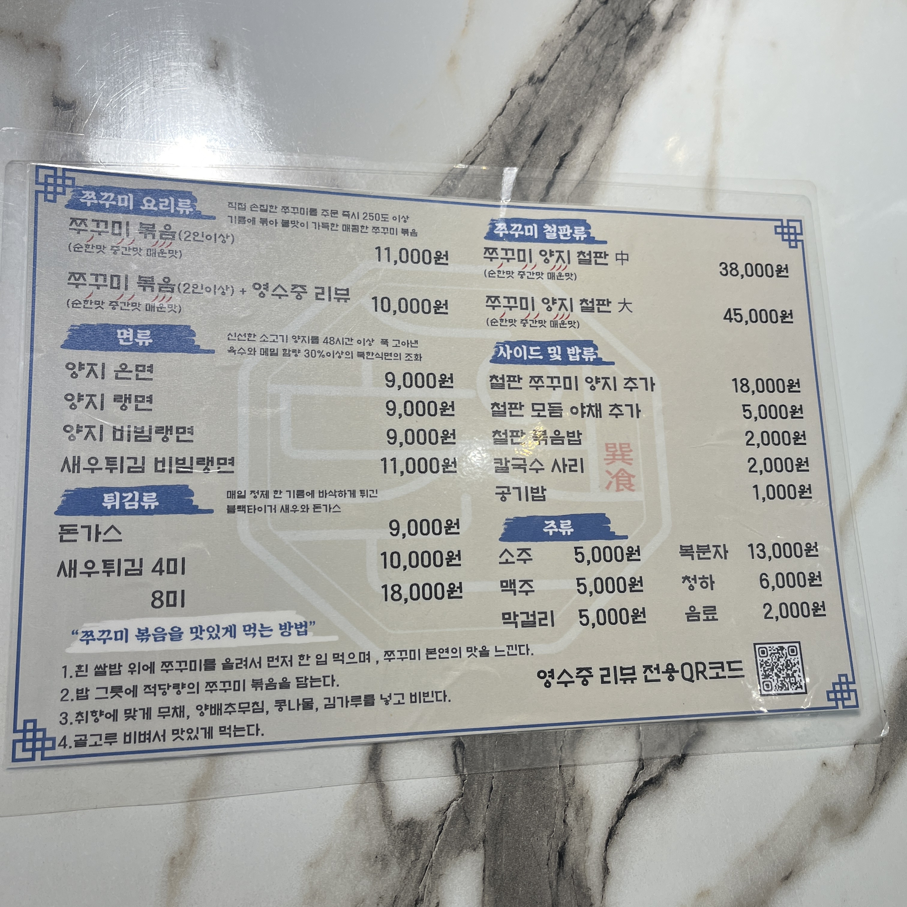 쭈꾸미볶음을 영수증리뷰를 쓸 경우 단돈 10,000원에 즐길 수 있습니다.